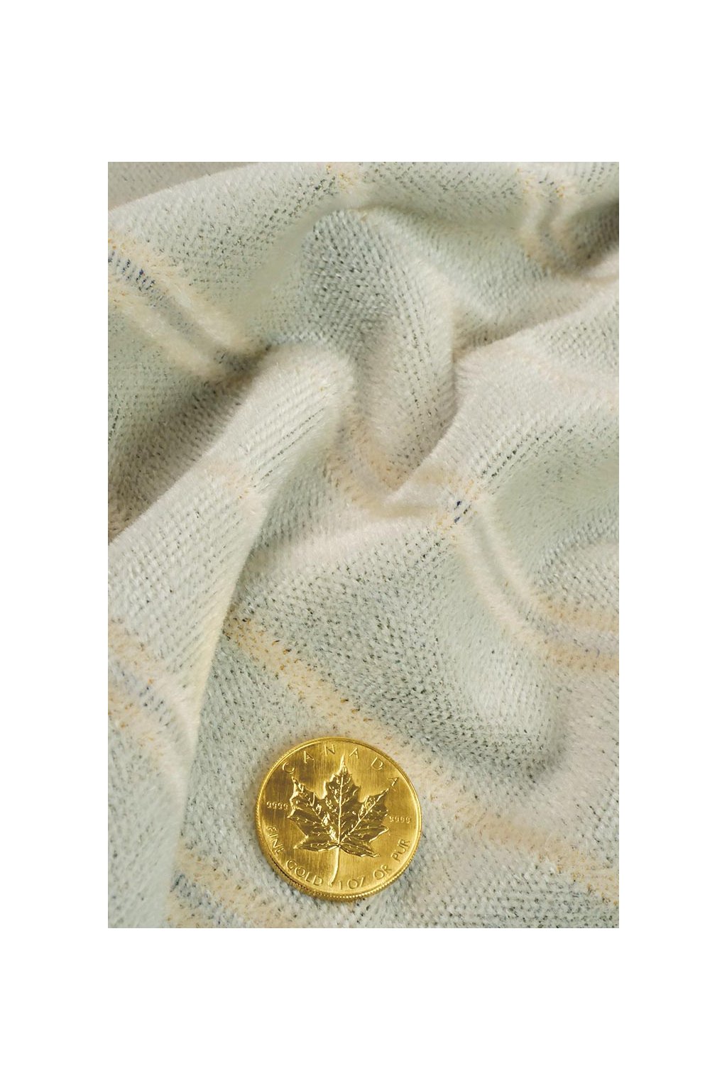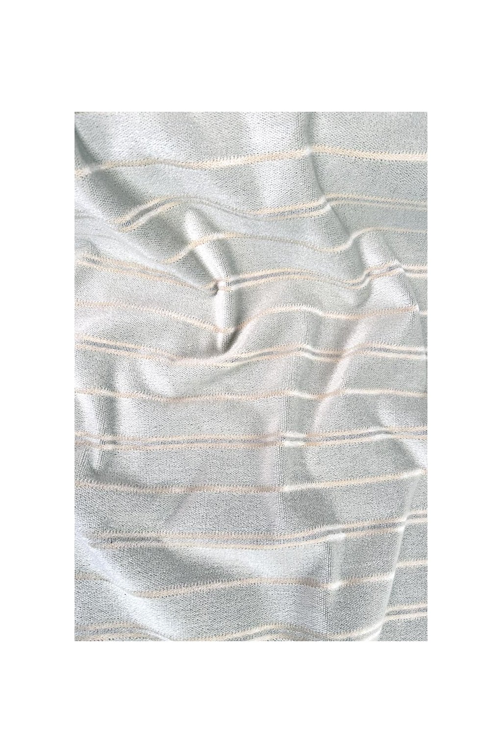 Kvalitní mohérová potahová látka v béžovém odstínu se vzorem pruhů a příměsí hedvábí. Má lesklý hedvábný luxusní vzhled.