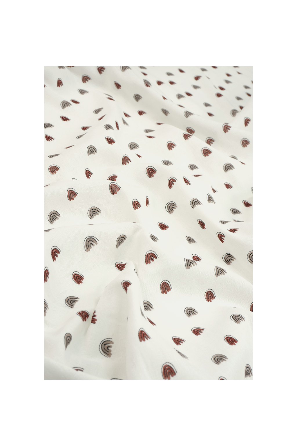 Dvojitá gázovina s motivem barevných obloučků na podkladu lomené bílé barvy.