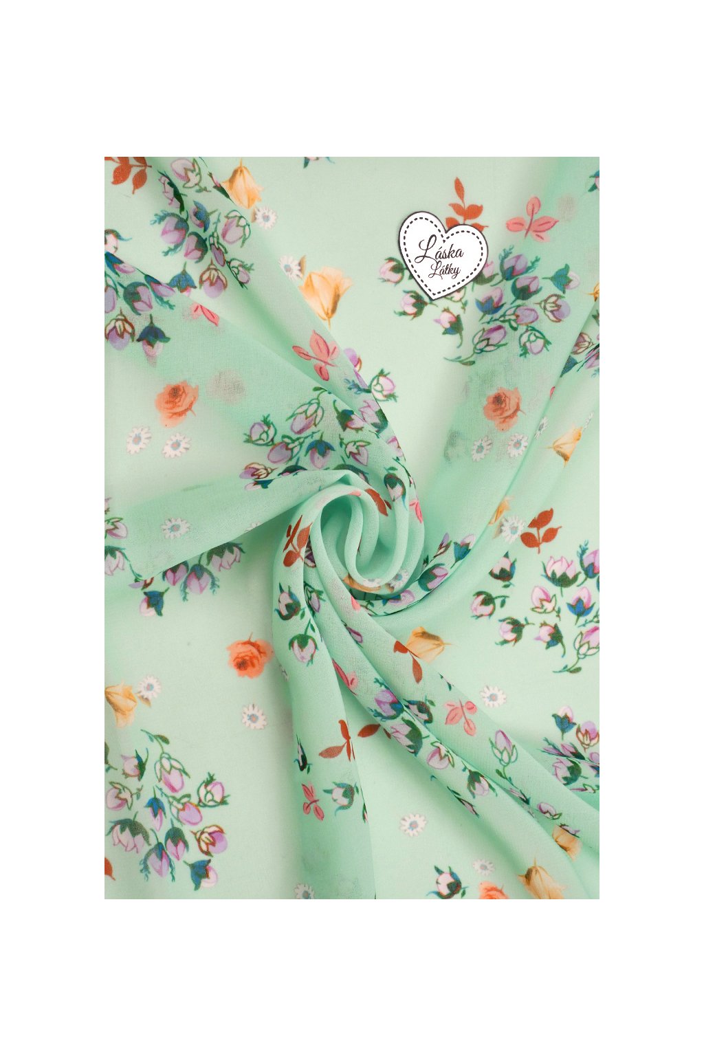 ŠIFON, TYRKYSOVÝ S POTISKEM KVĚTIN