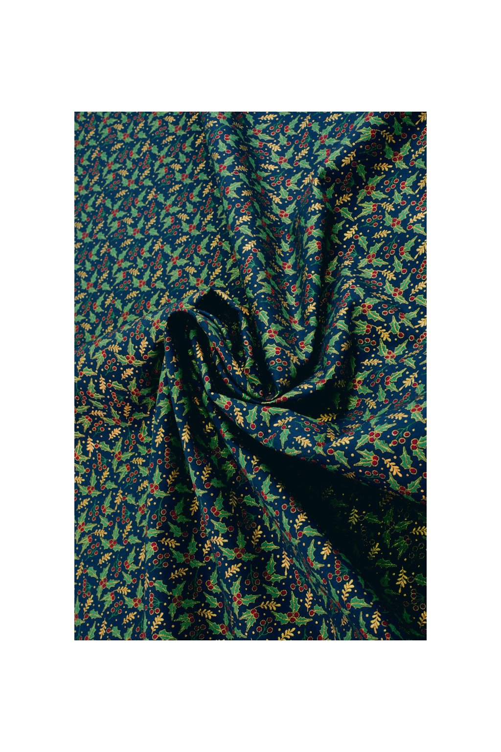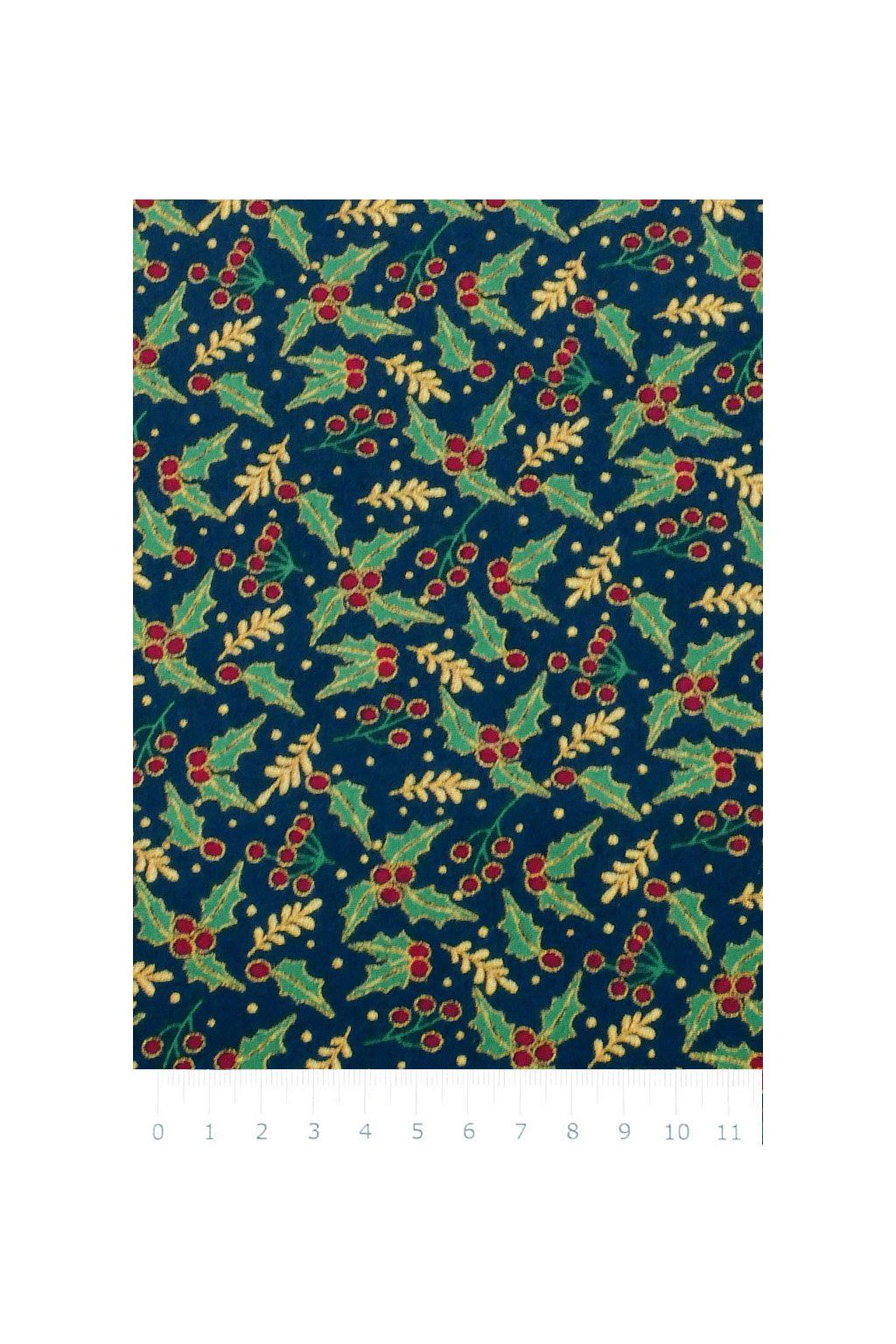 VÁNOČNÍ BAVLNA černá - zlaté jmelí