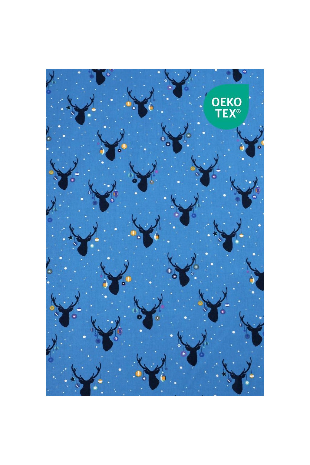 VÁNOČNÍ BAVLNA MODRÁ, HLAVA JELENA
