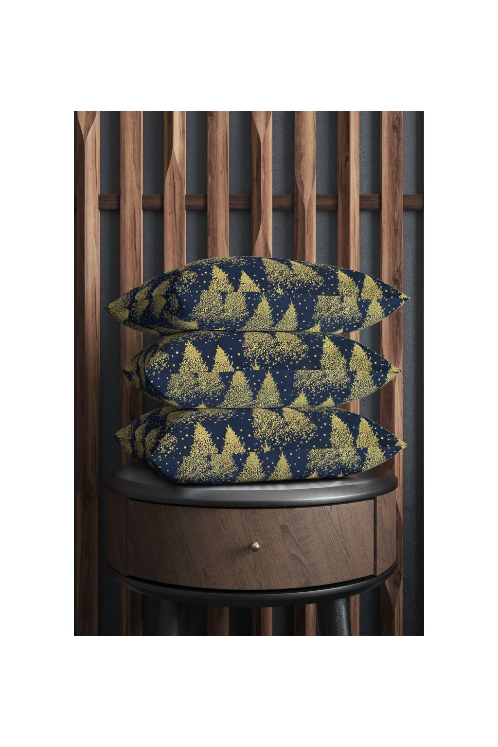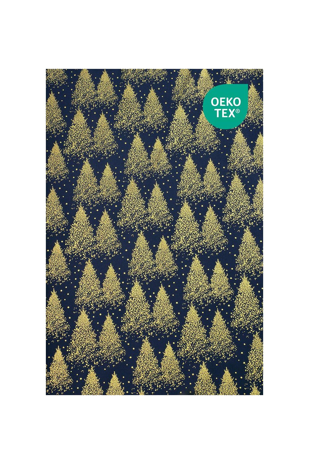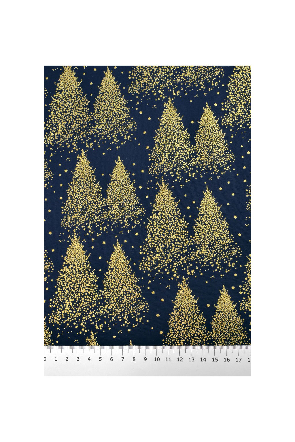 VÁNOČNÍ BAVLNA MODRO-ČERNÁ, ZLATÉ STROMY