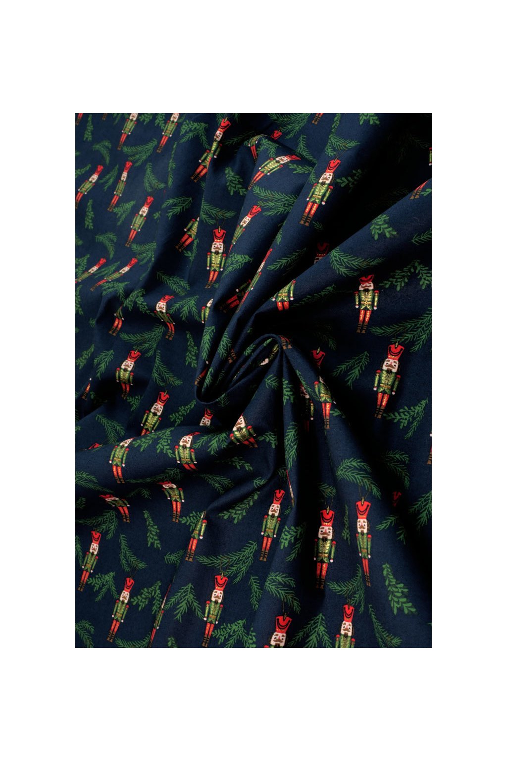 VÁNOČNÍ BAVLNA MODROČERNÁ, LOUSKÁČEK
