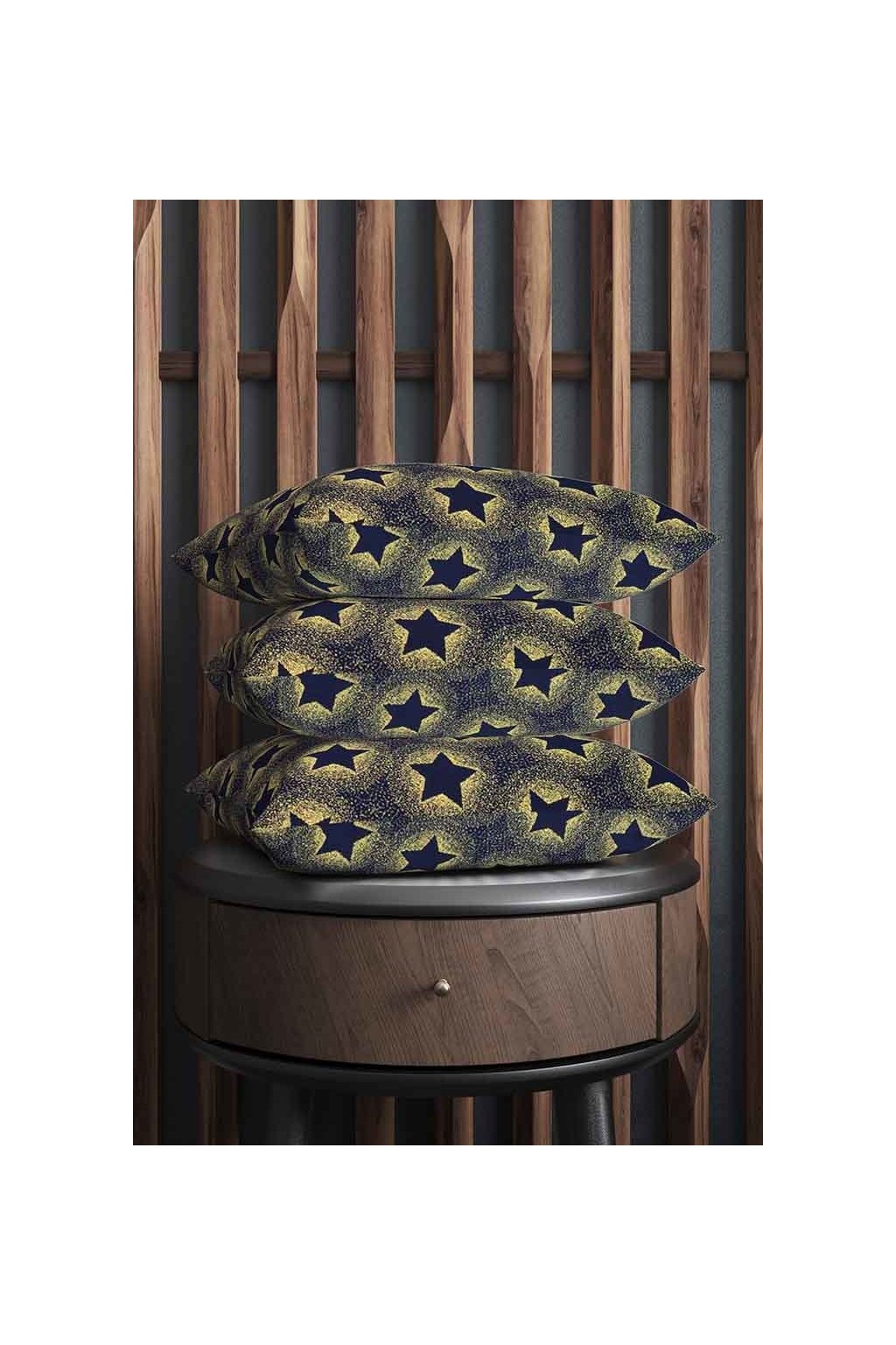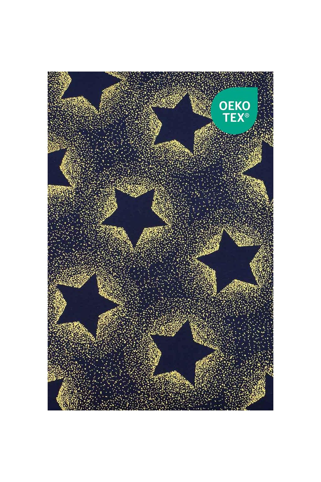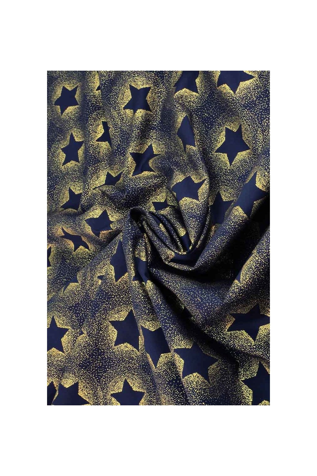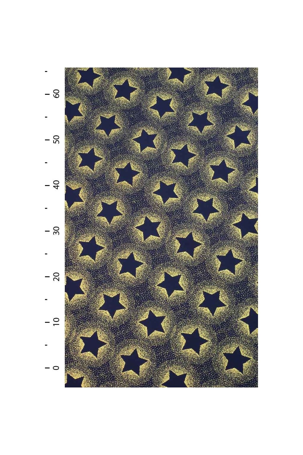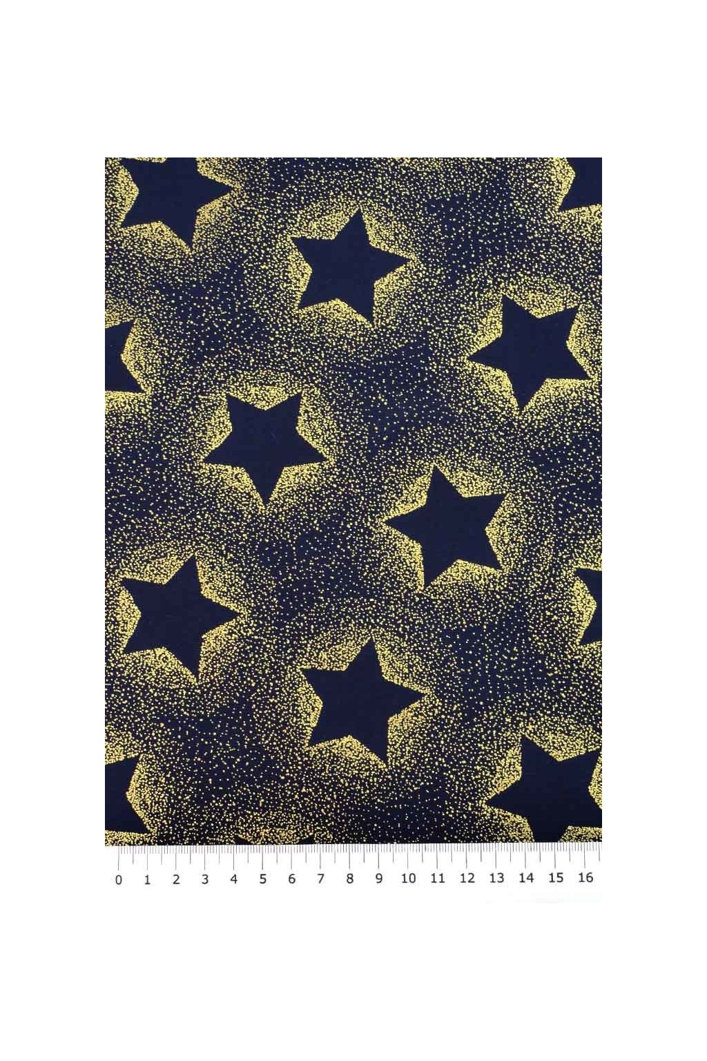 VÁNOČNÍ BAVLNA MODROČERNÁ, ZLATÉ ZÁŘÍCÍ HVĚZDY