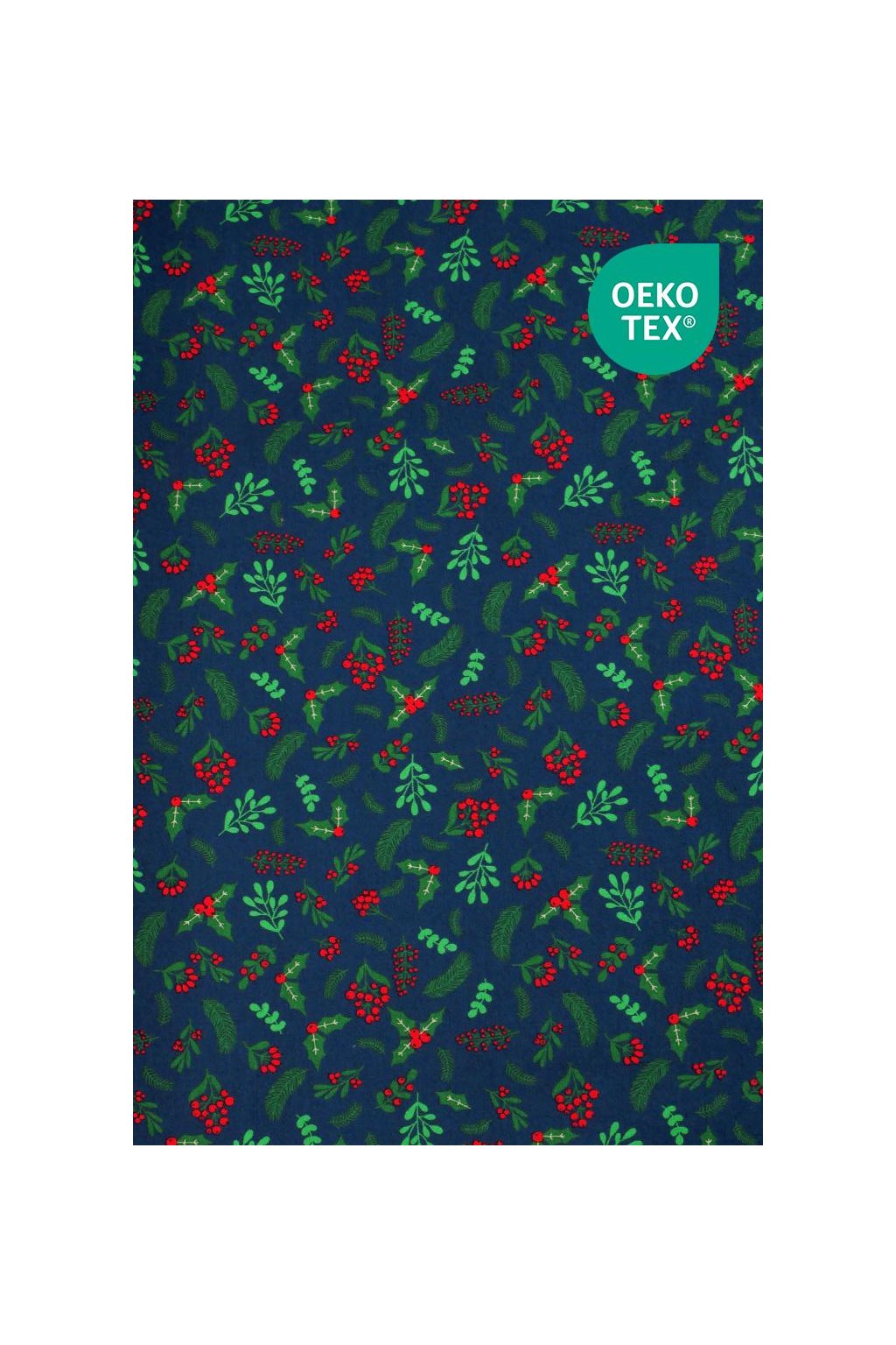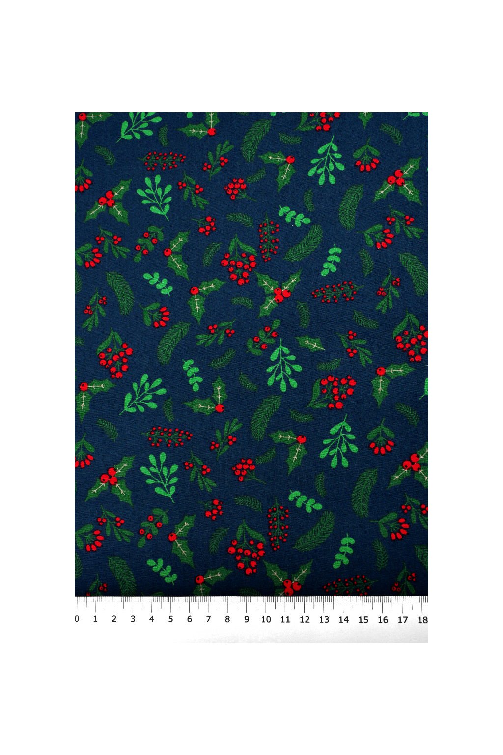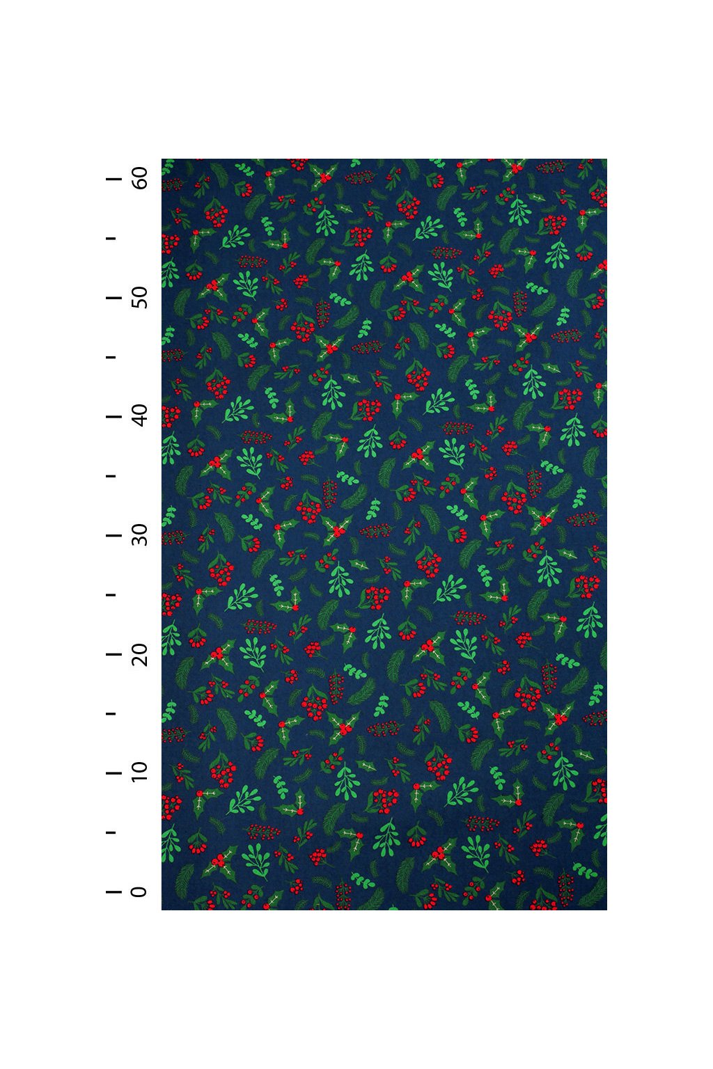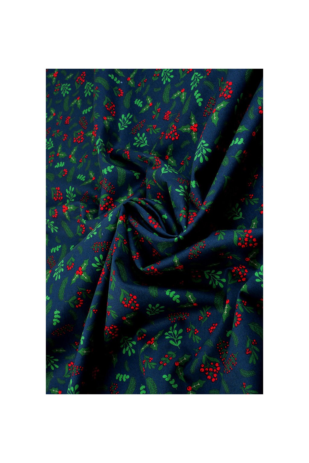 VÁNOČNÍ BAVLNA MODROČERNÁ - MOTIV BOBULE