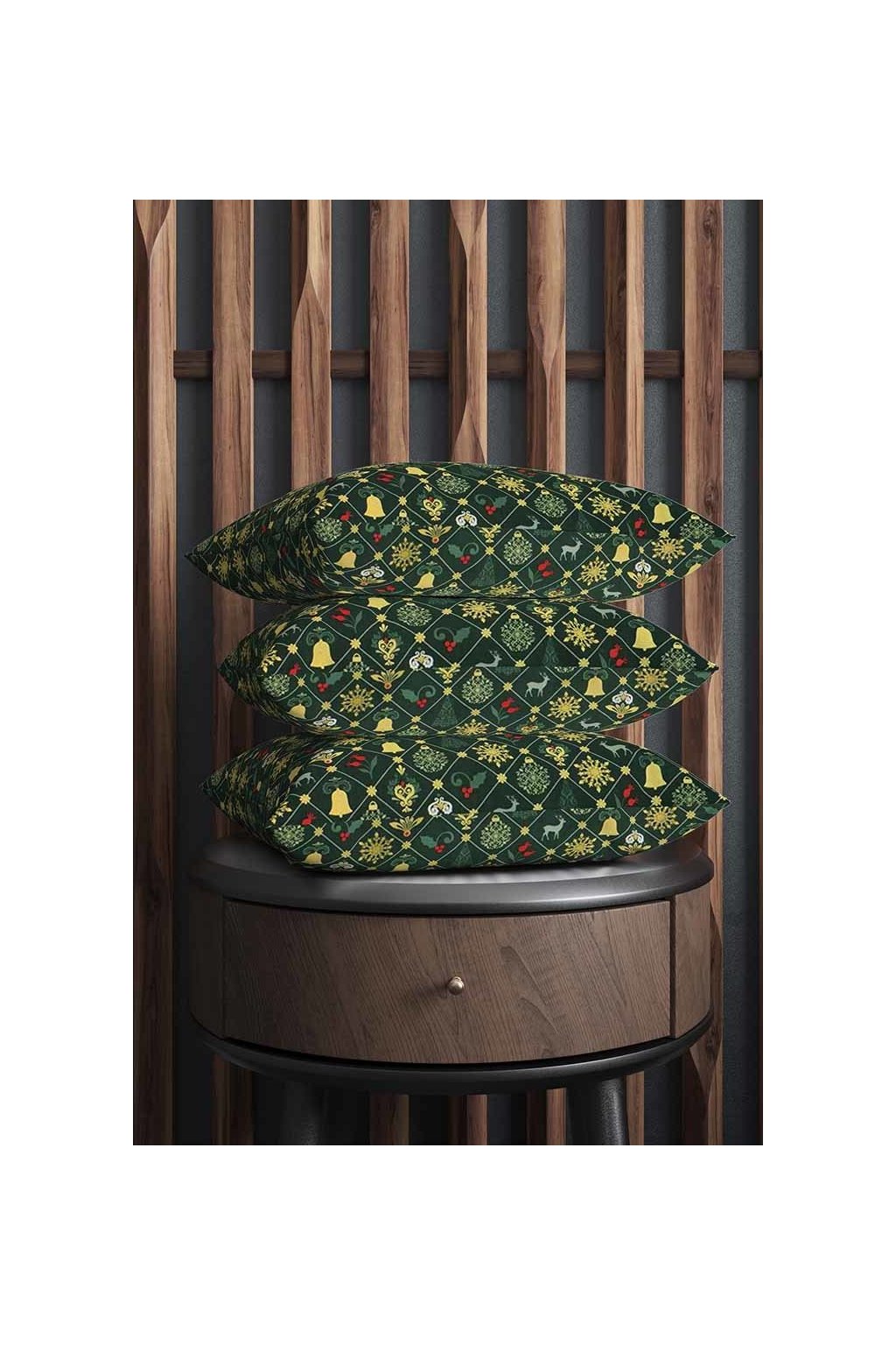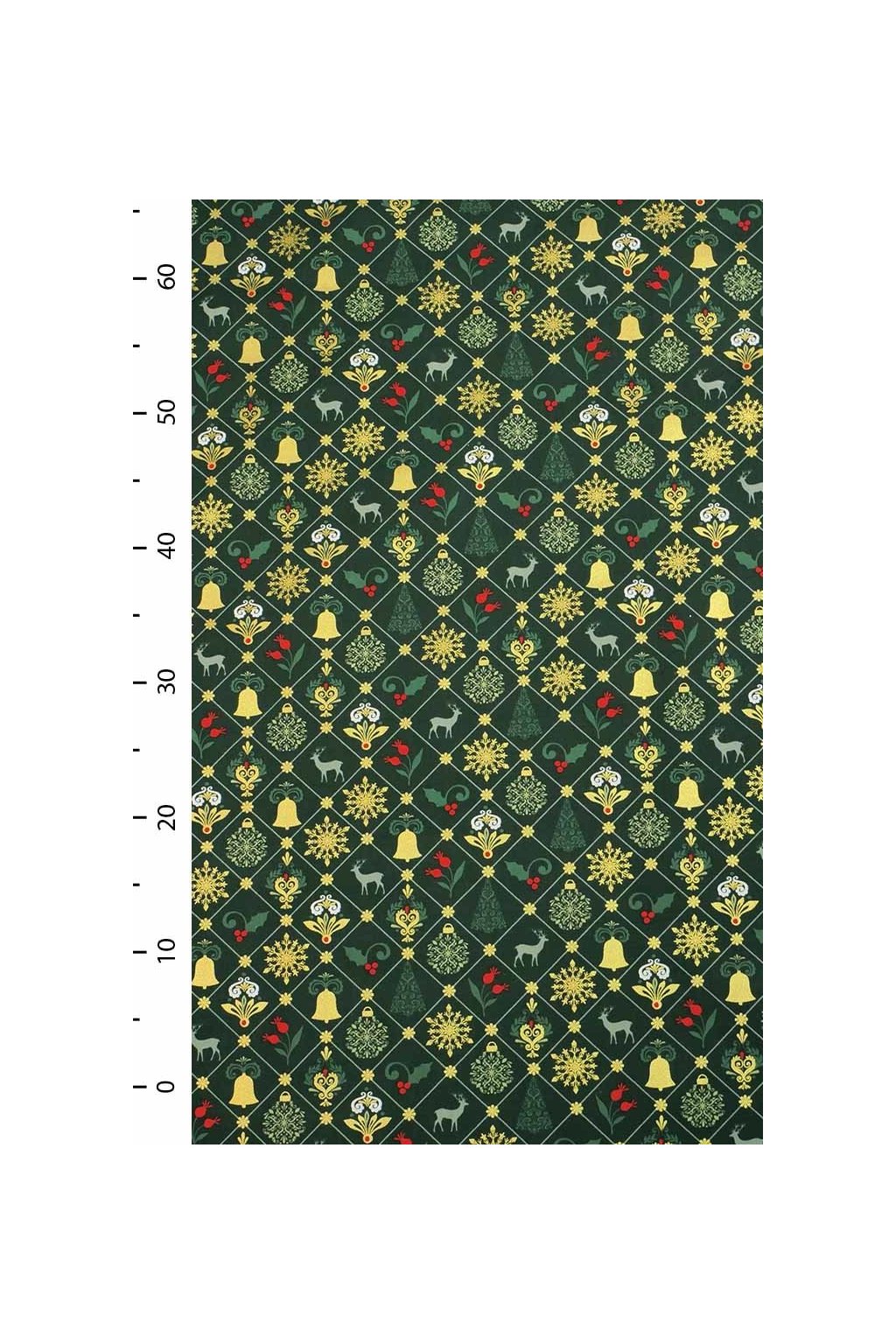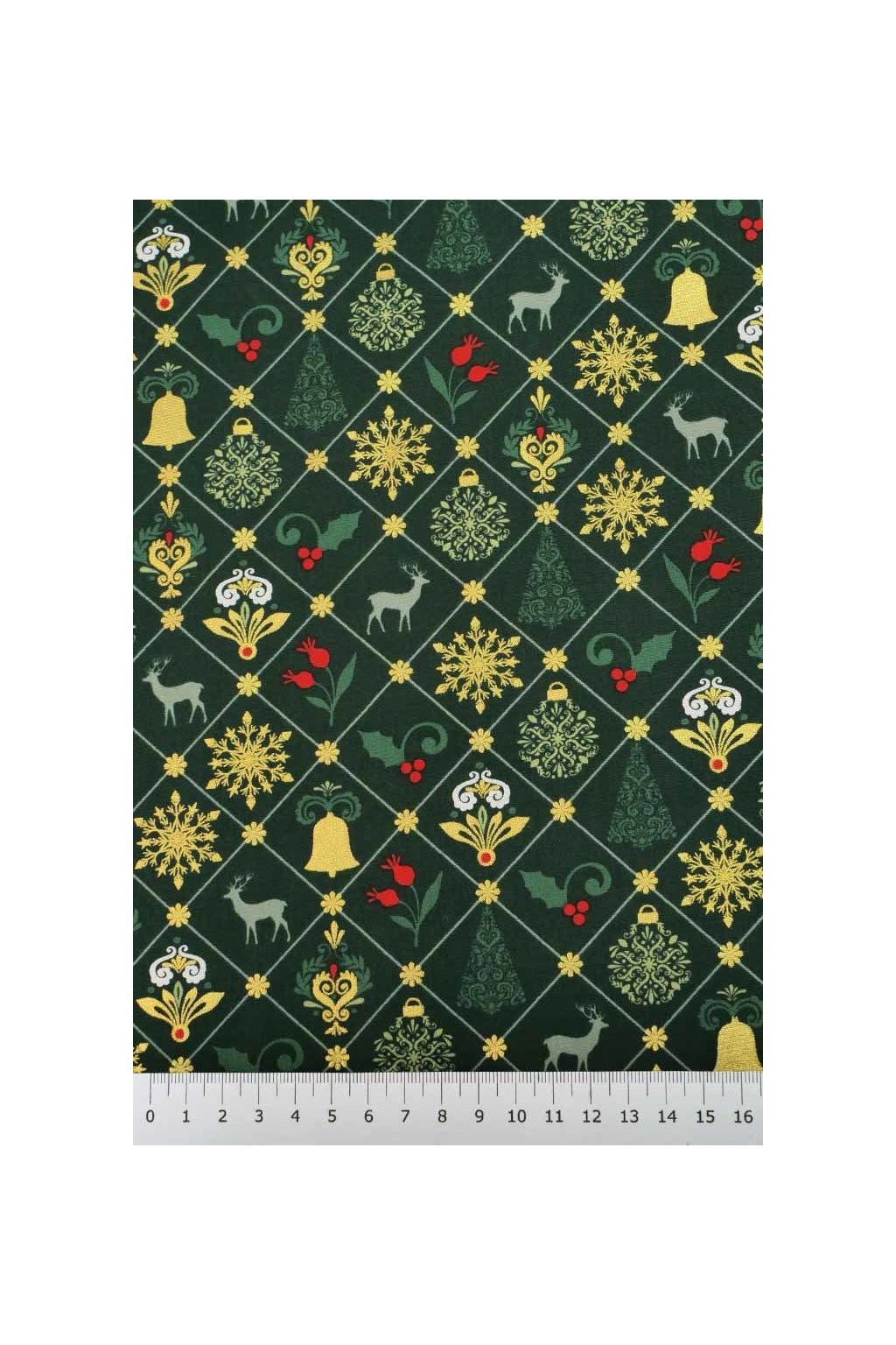 VÁNOČNÍ BAVLNA TM.ZELENÁ ZLATÝ ORNAMENT