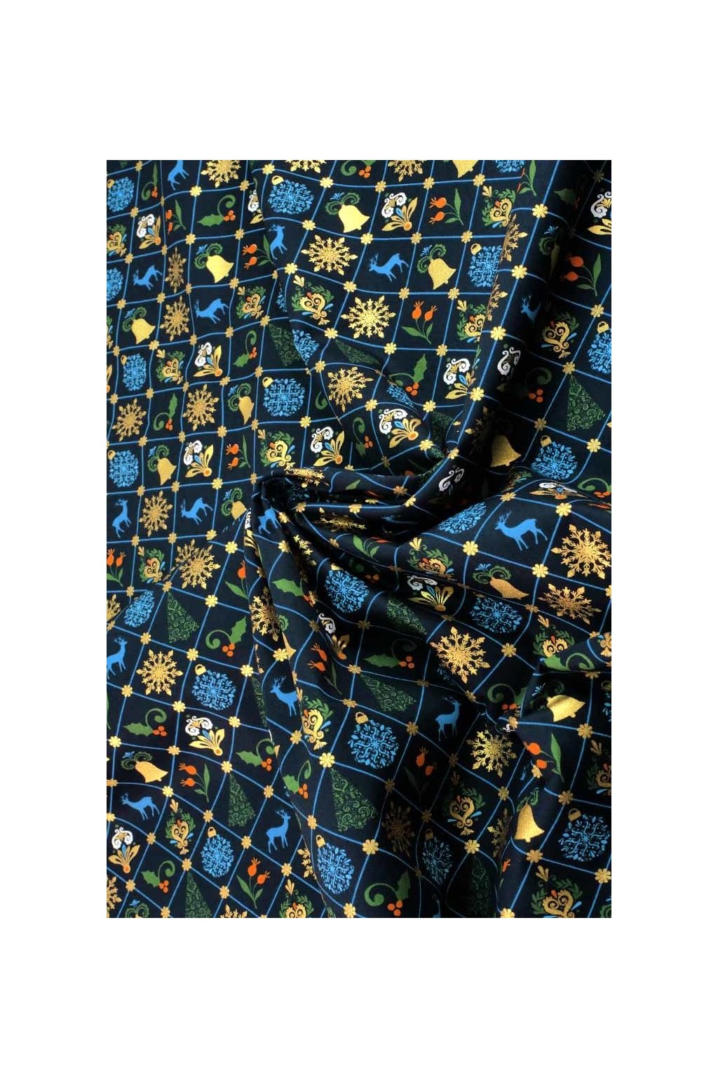 VÁNOČNÍ BAVLNA TMAVĚ MODRÁ SE VZOREM