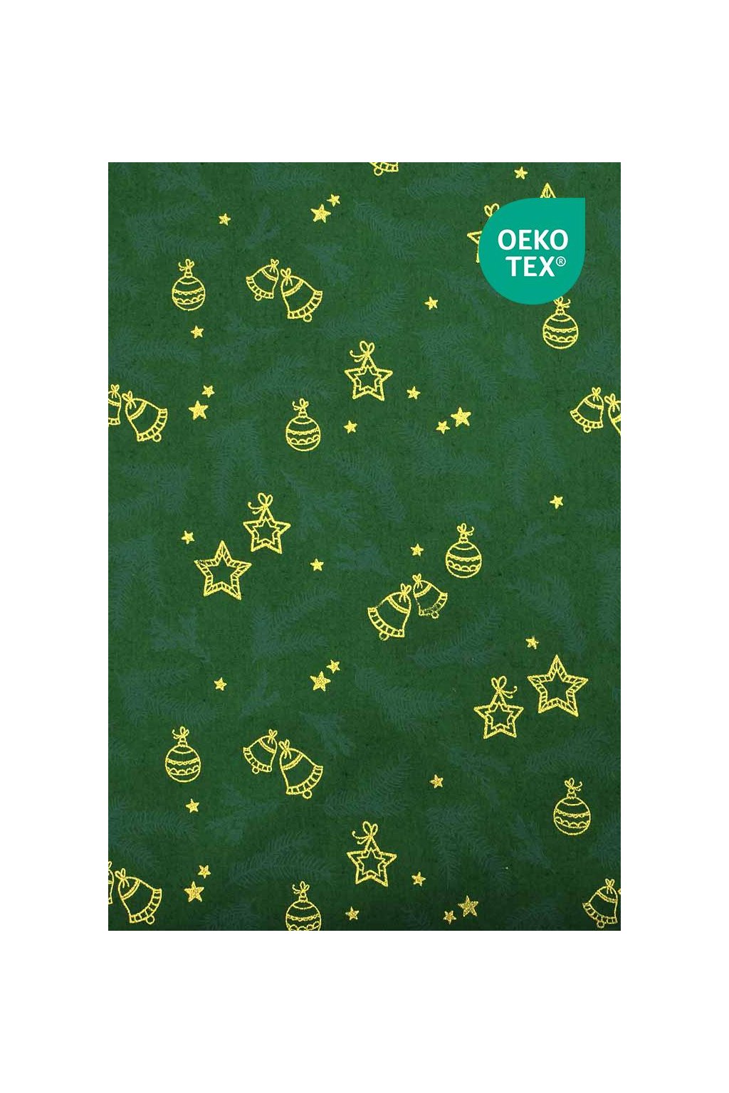 VÁNOČNÍ BAVLNA ZELENÁ, JEHLIČÍ A ZLATÉ OZDOBY