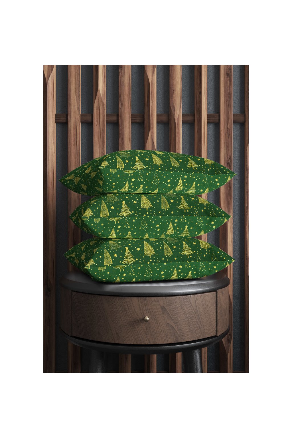 VÁNOČNÍ BAVLNA ZELENÁ, ZLATÉ STROMEČKY