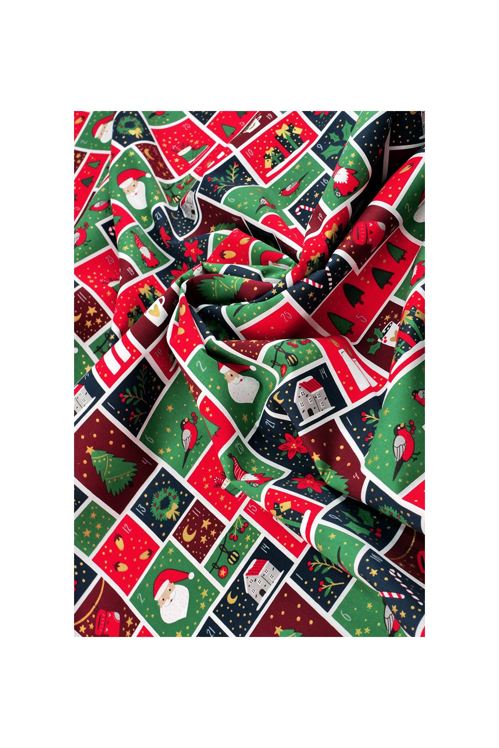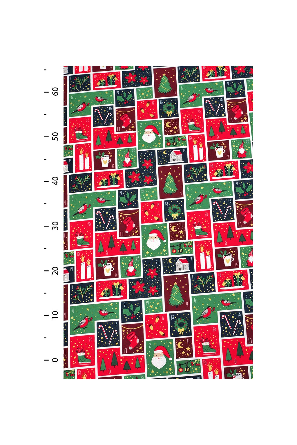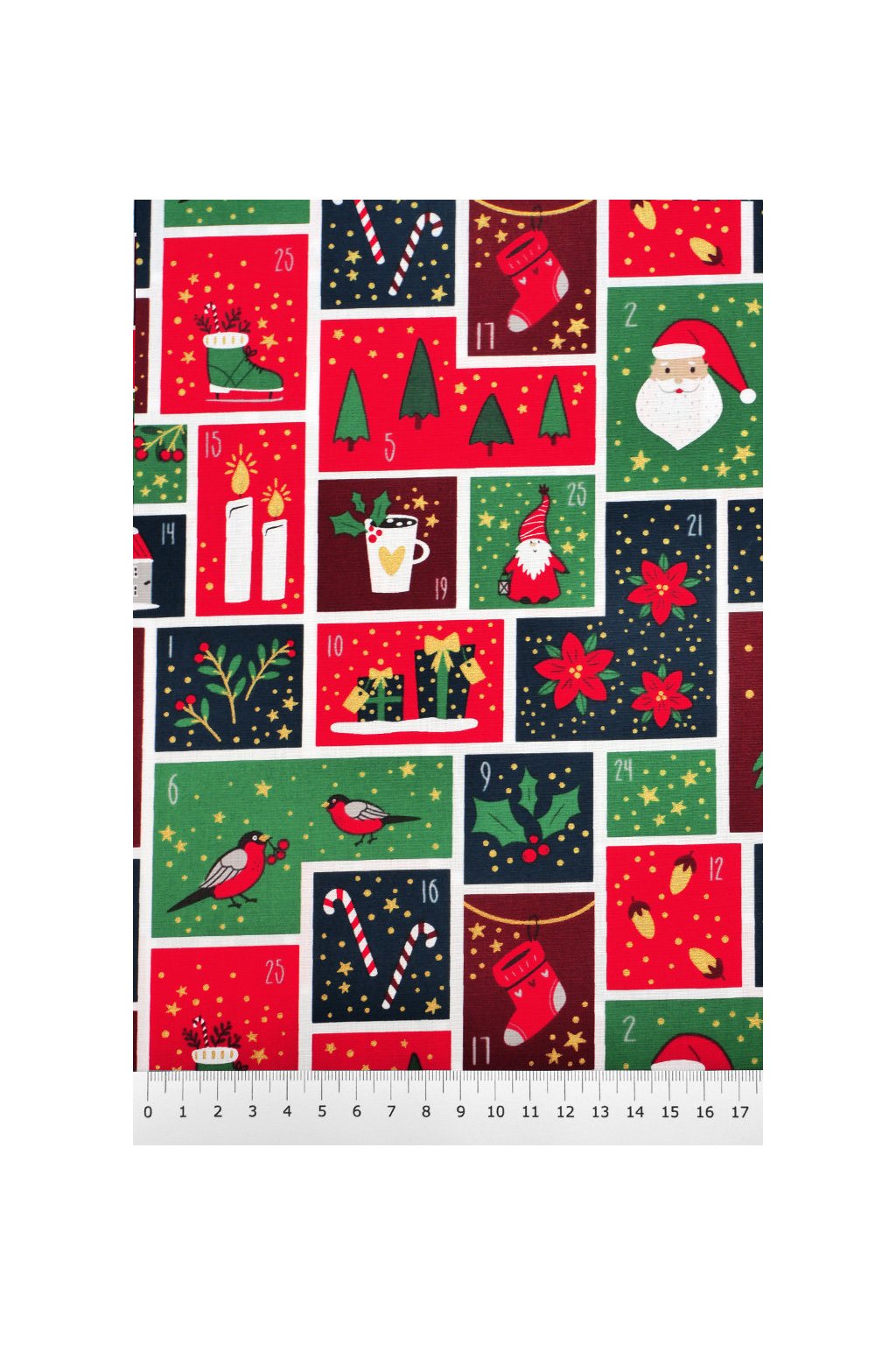 VÁNOČNÍ BAVLNA ZELENÁ,ČERVENÁ,MODRÁ - ADVENTNÍ KALENDÁŘ