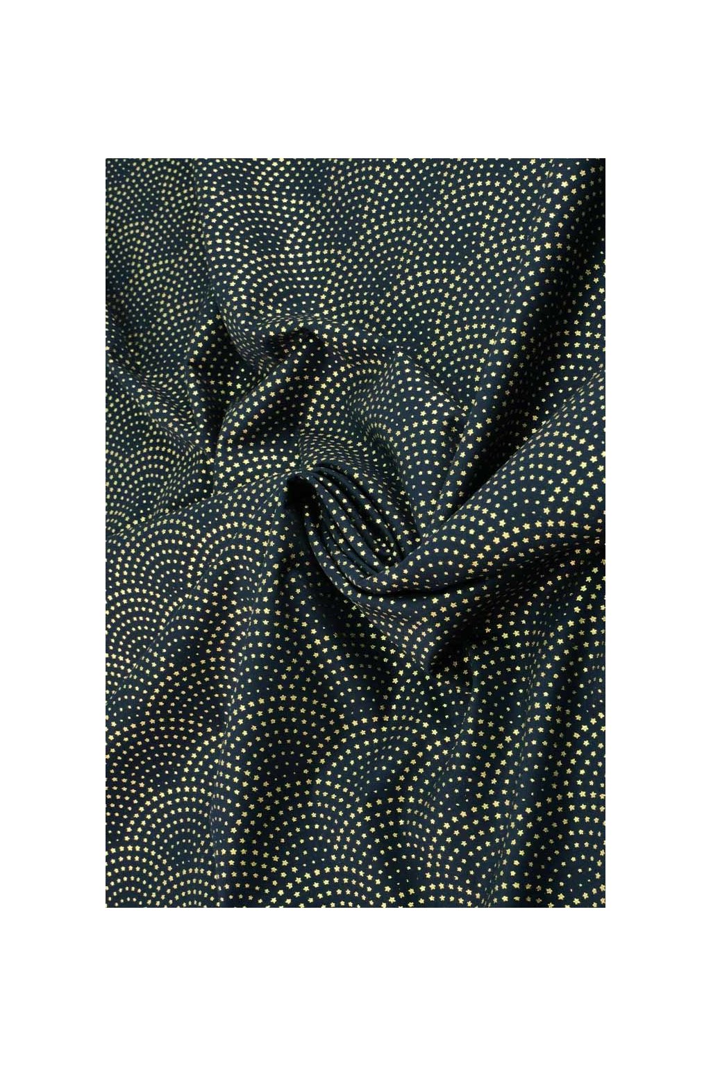 VÁNOČNÍ BAVLNA ZELENOMODRÁ, DROBNÉ ZLATÉ HVĚZDIČKY