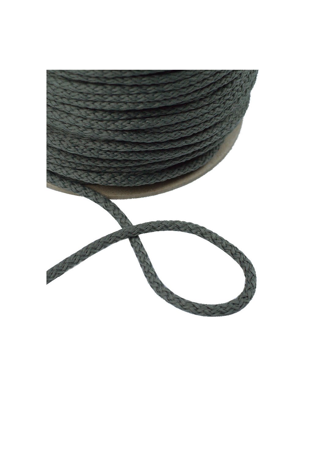 Oděvní šnůra šedé barvy.