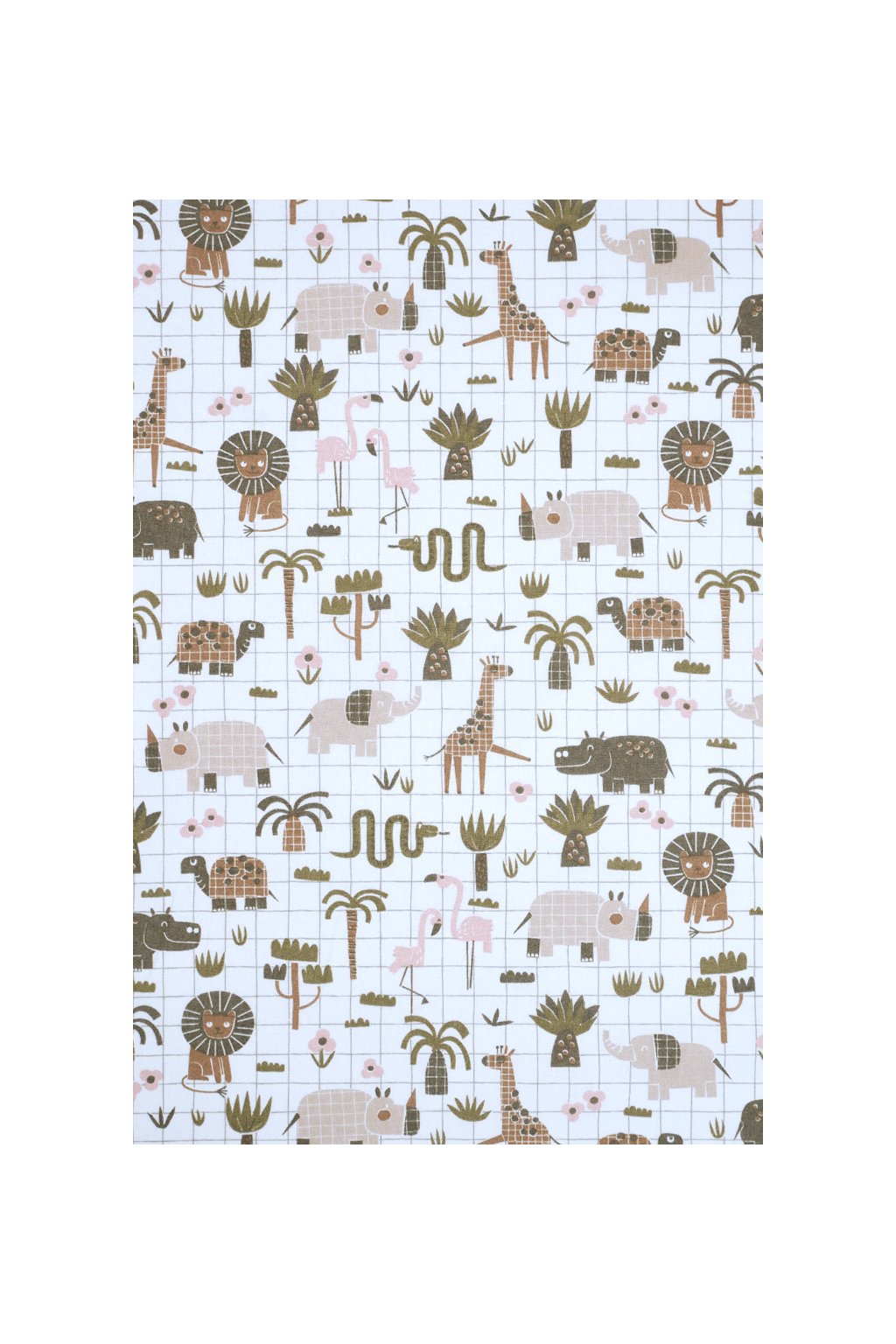 BAVLNĚNÝ POPELÍN, BÍLÝ SE VZOREM KHAKI ZVÍŘÁTEK