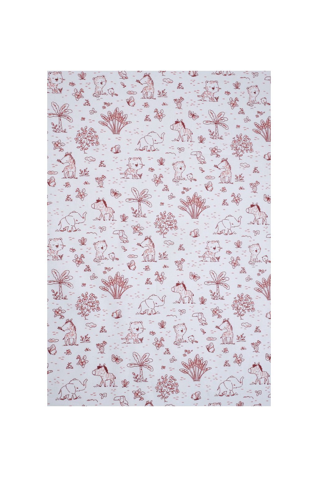 BAVLNĚNÝ POPELÍN, BÍLÝ SE ZVÍŘÁTKY (ČERVENOORANŽOVÝ TISK)