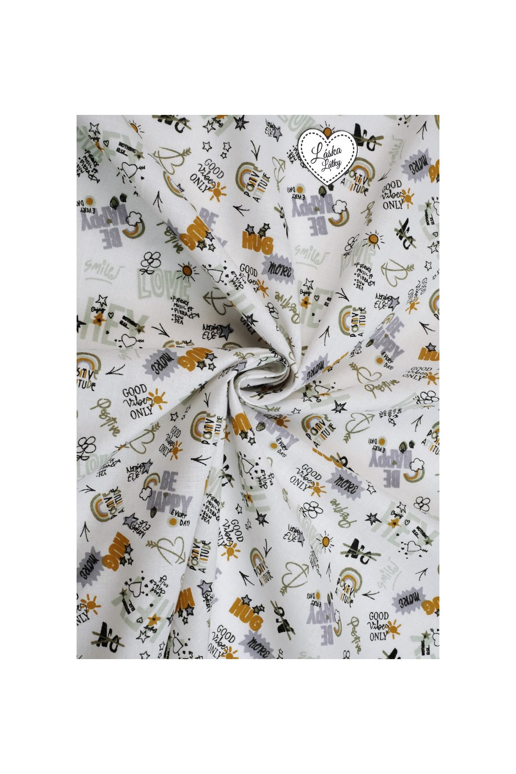 BAVLNĚNÝ POPELÍN, DĚTSKÝ VZOR POZITIVNÍ SLOVA