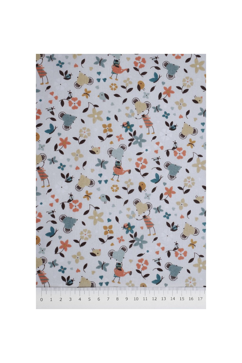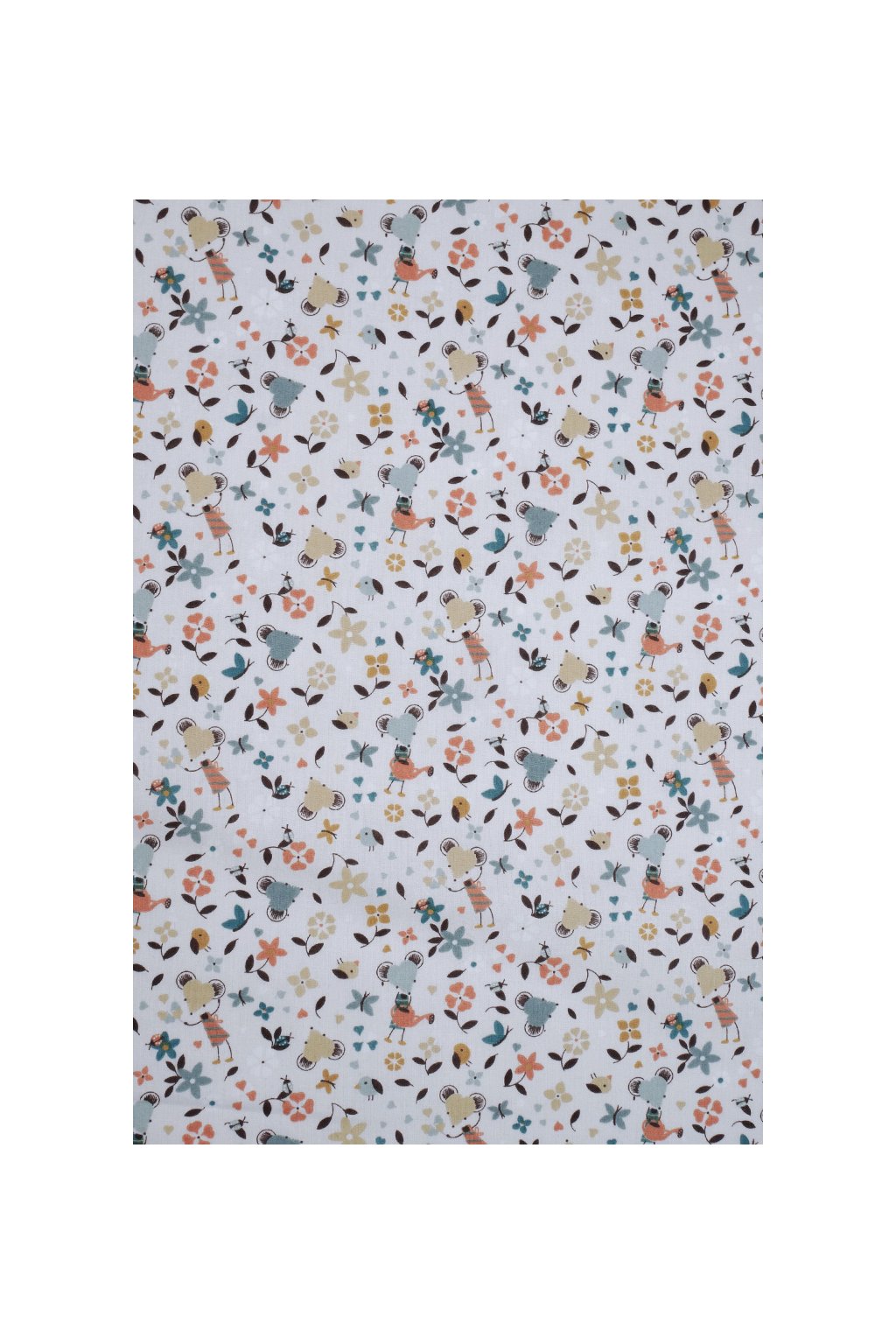 BAVLNĚNÝ POPELÍN, DĚTSKÝ VZOR S MYŠKAMI A KYTIČKY