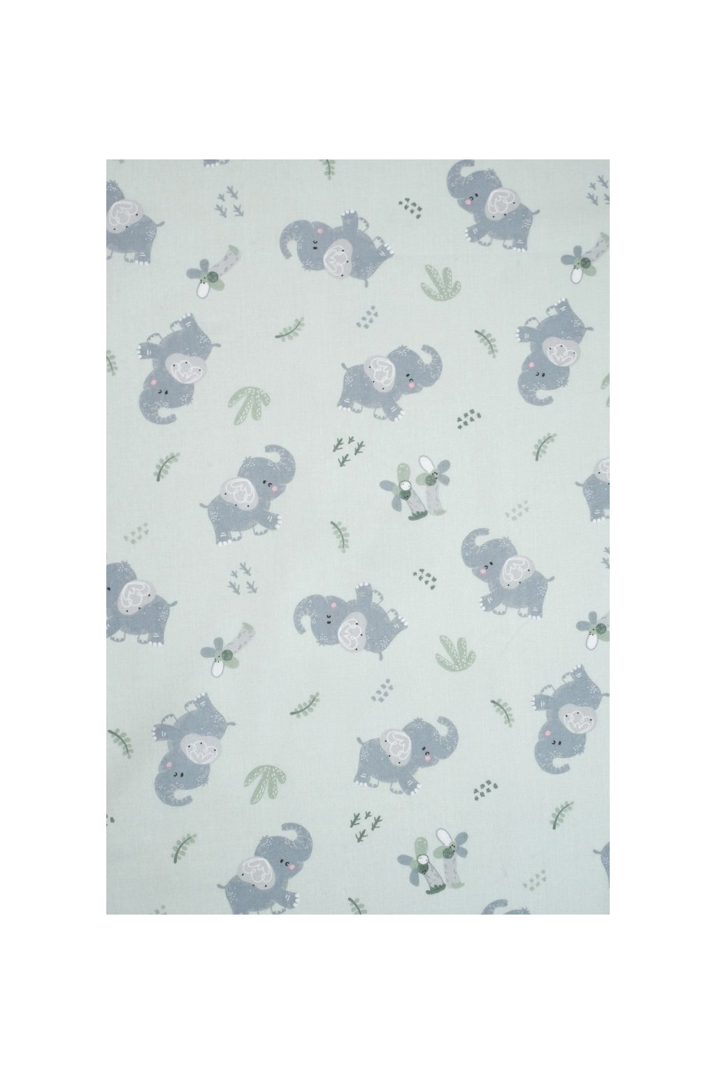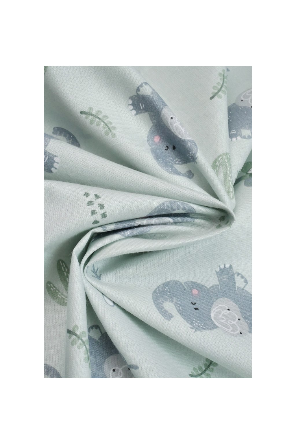 BAVLNĚNÝ POPELÍN, PASTELOVĚ ZELENÝ SE VZOREM SLONÍKŮ