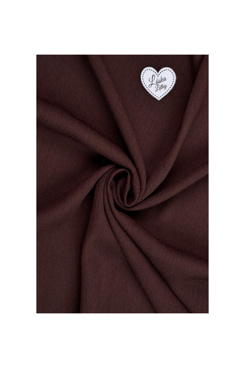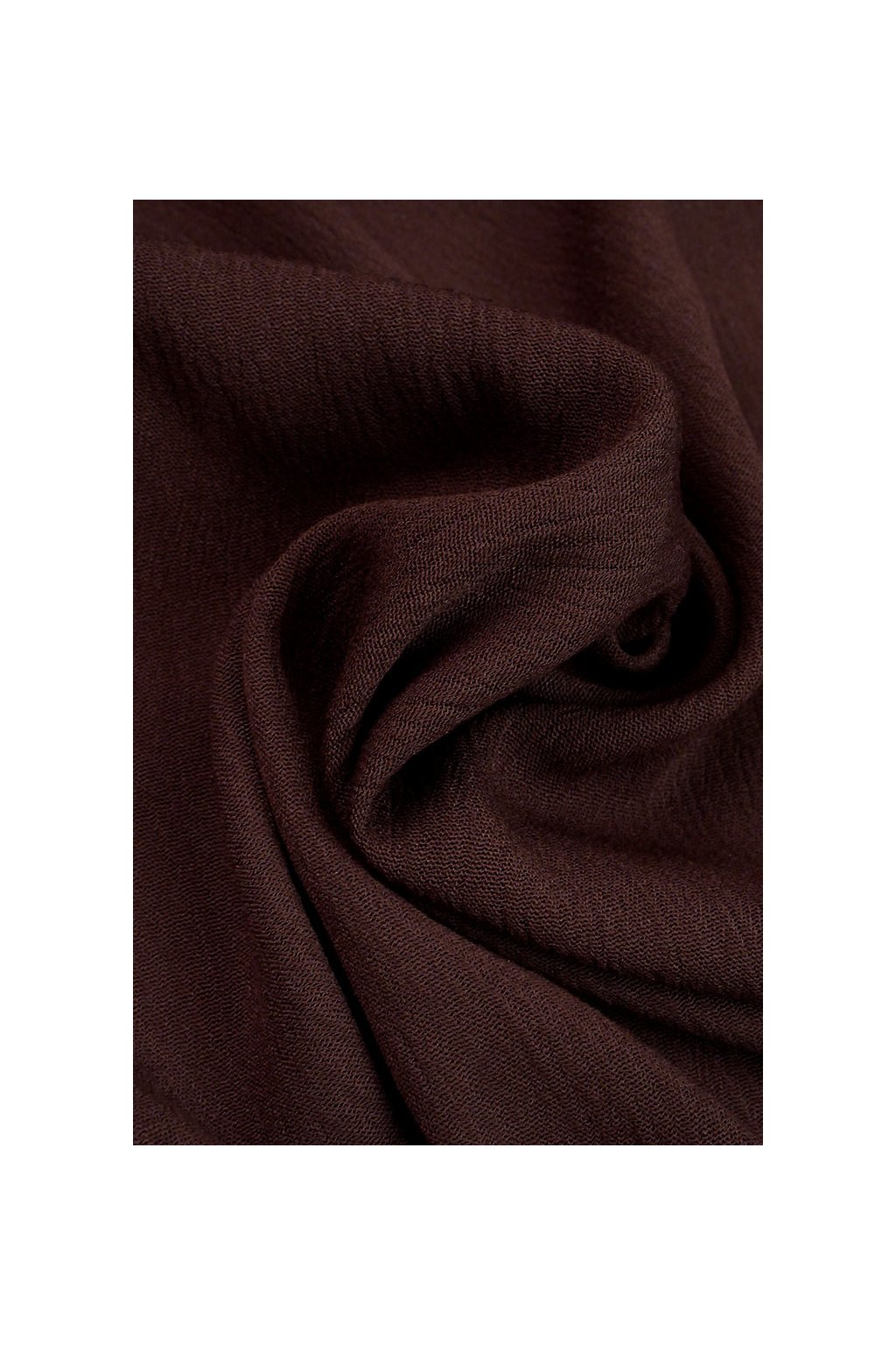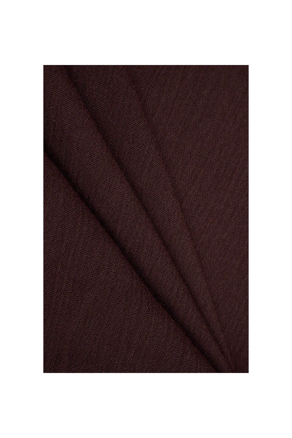 Hebká a lehká viskózová šatovka s jemnou krešovanou strukturou v sytě čokoládově hnědém odstínu. Materiál je splývavý, prodyšný a velmi příjemný na nošení, s přirozeným mačkáním, které dodává ležérní šarm.