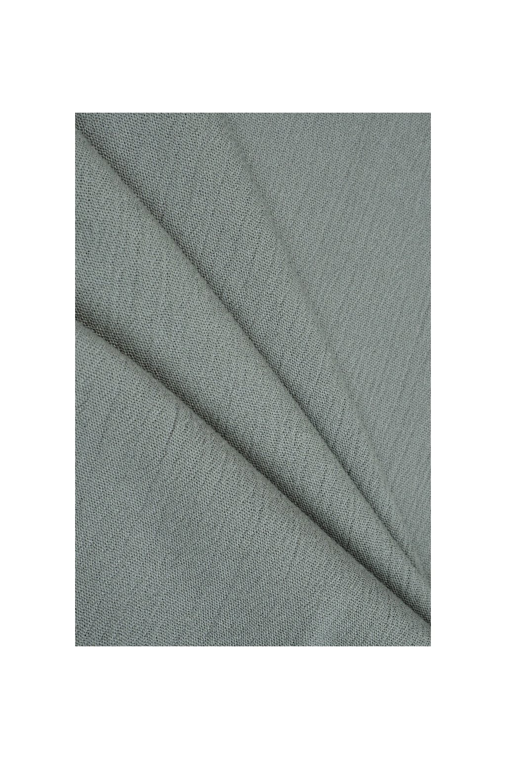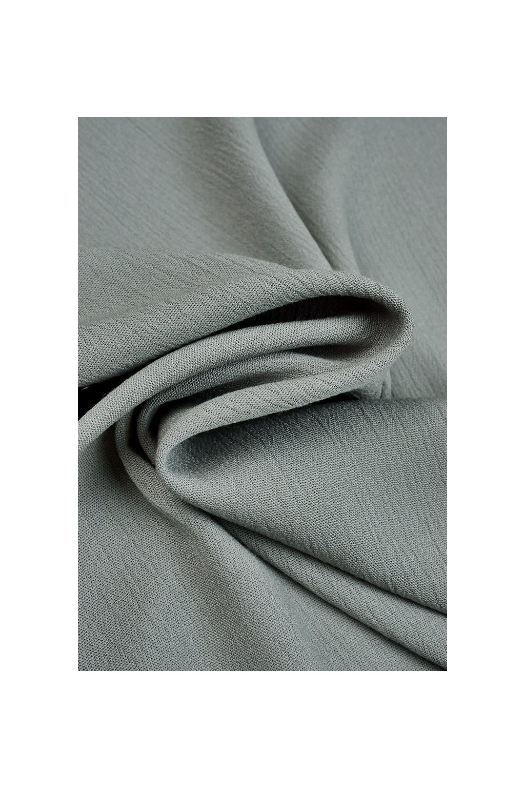 Lehká a vzdušná viskózová šatovka s jemným krešovaným efektem ve studeném šedém odstínu. Materiál je splývavý, hebký na dotek a příjemný při nošení, s nenápadnou strukturou, která dodává látce ležérní eleganci.