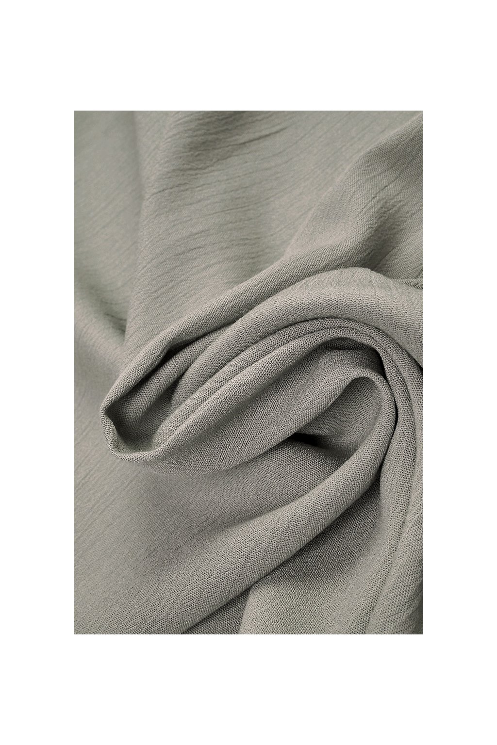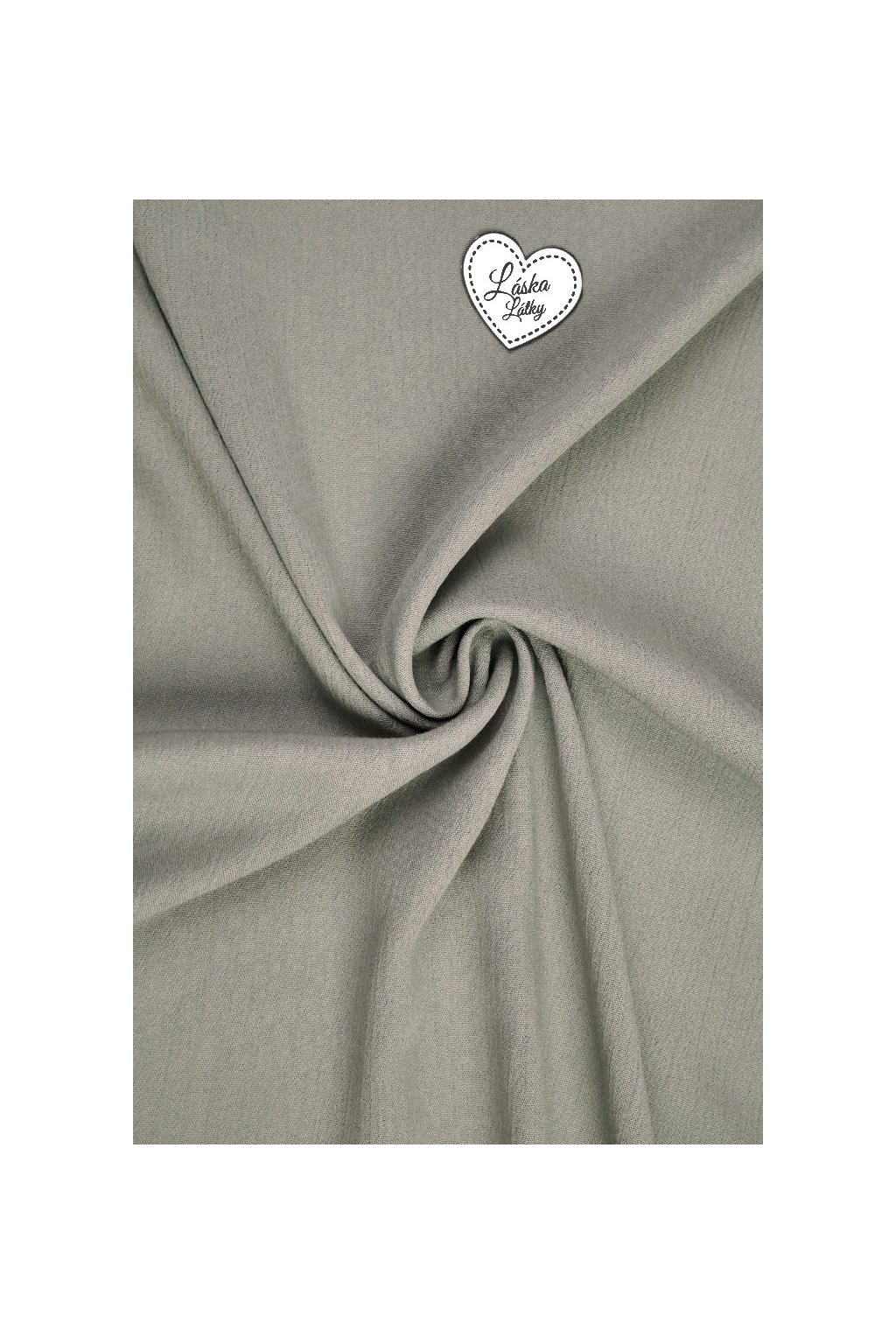 Jemně strukturovaná viskózová šatovka s krešovaným efektem v příjemné teple šedé barvě. Materiál je lehoučký, měkký na dotek a krásně splývá, přitom působí přirozeně a elegantně díky decentnímu mačkání.