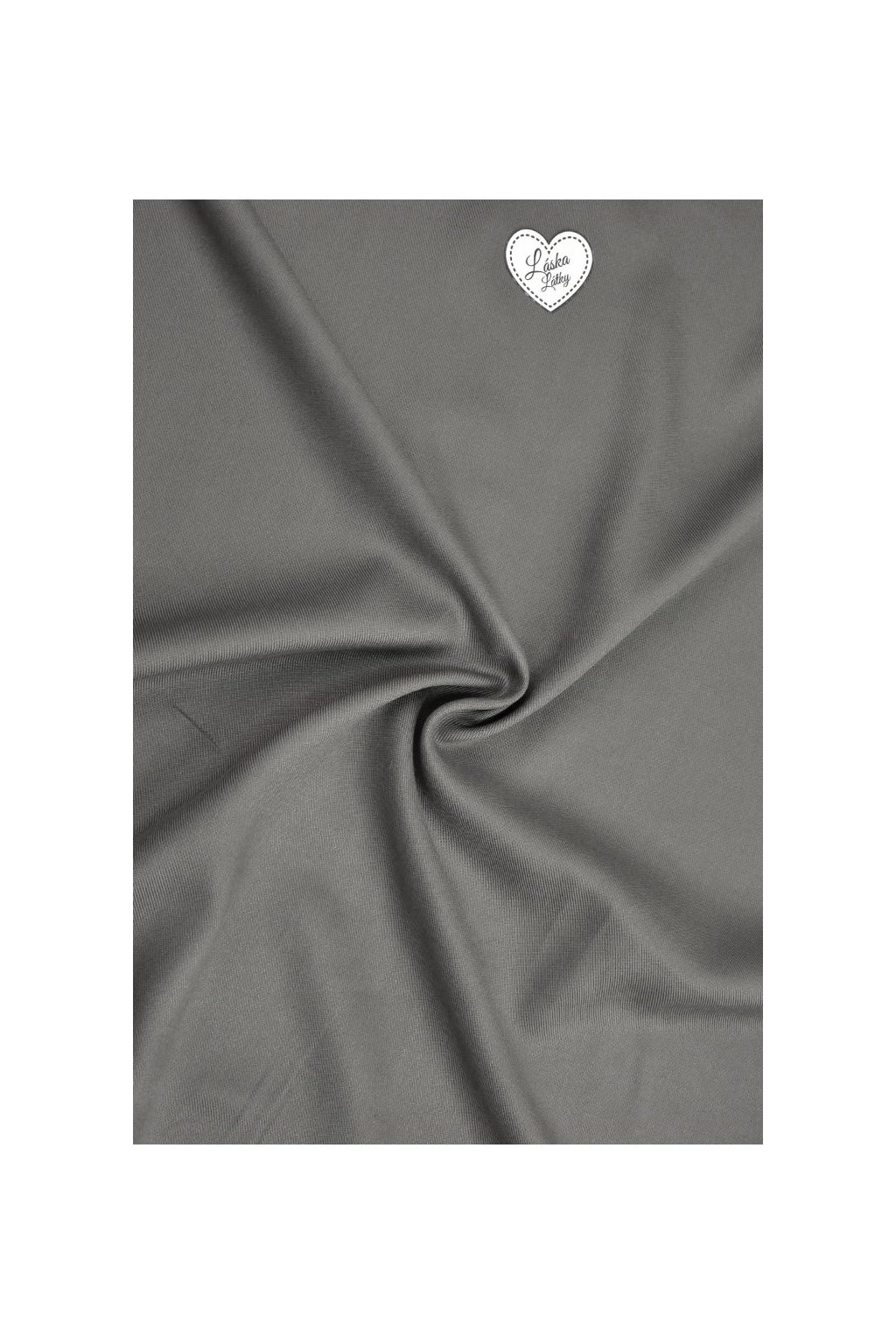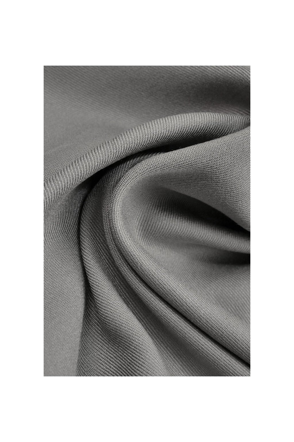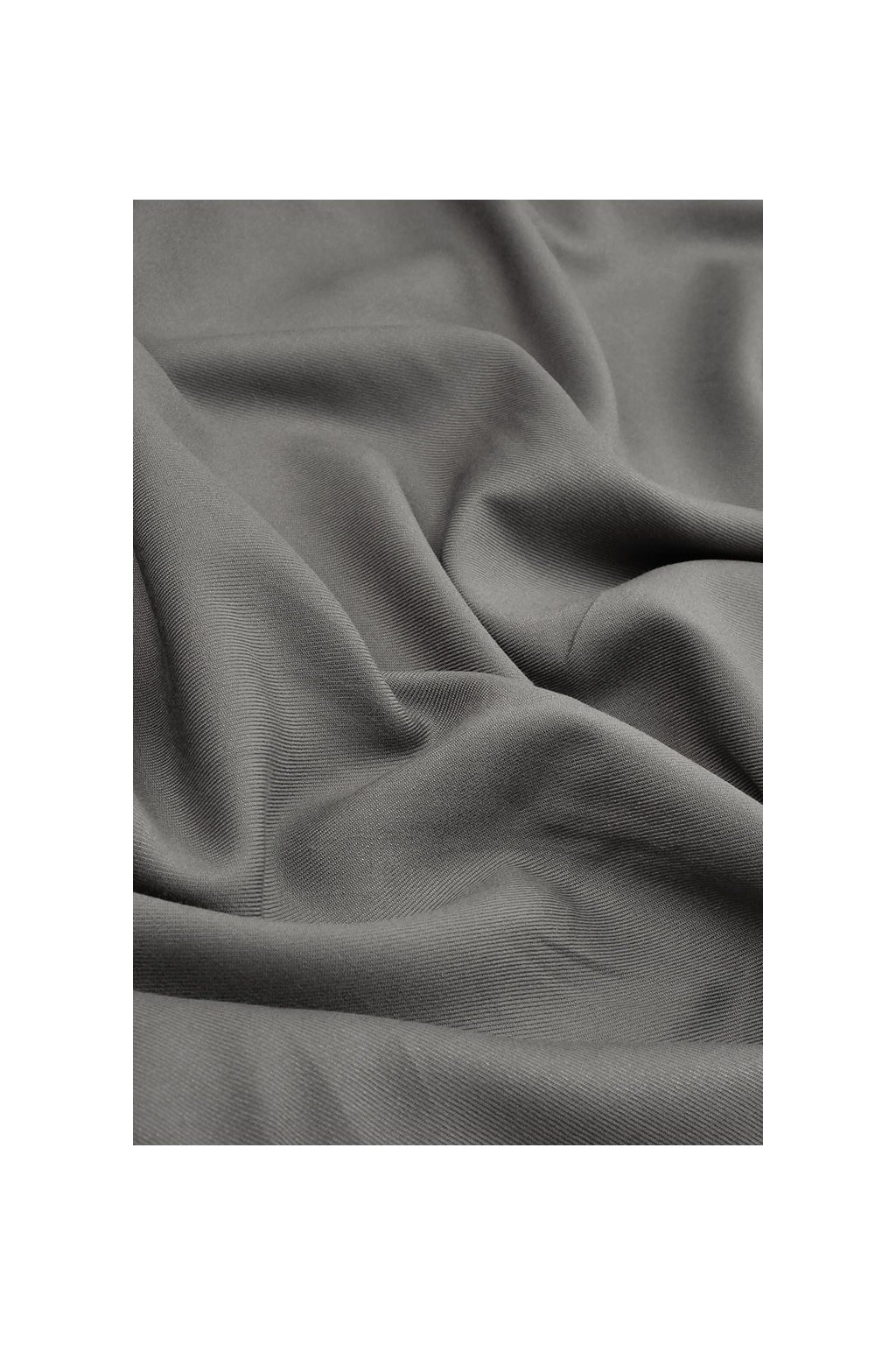Jednobarevná viskózová látka s keprovou vazbou středně šedé barvy.