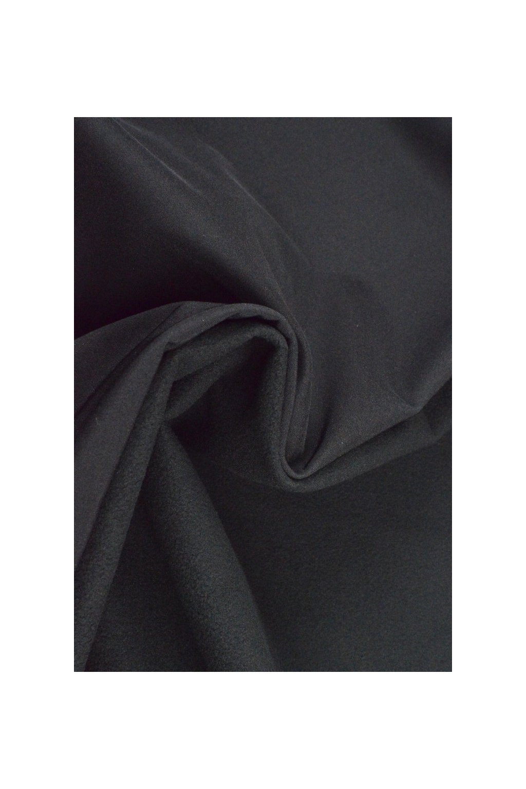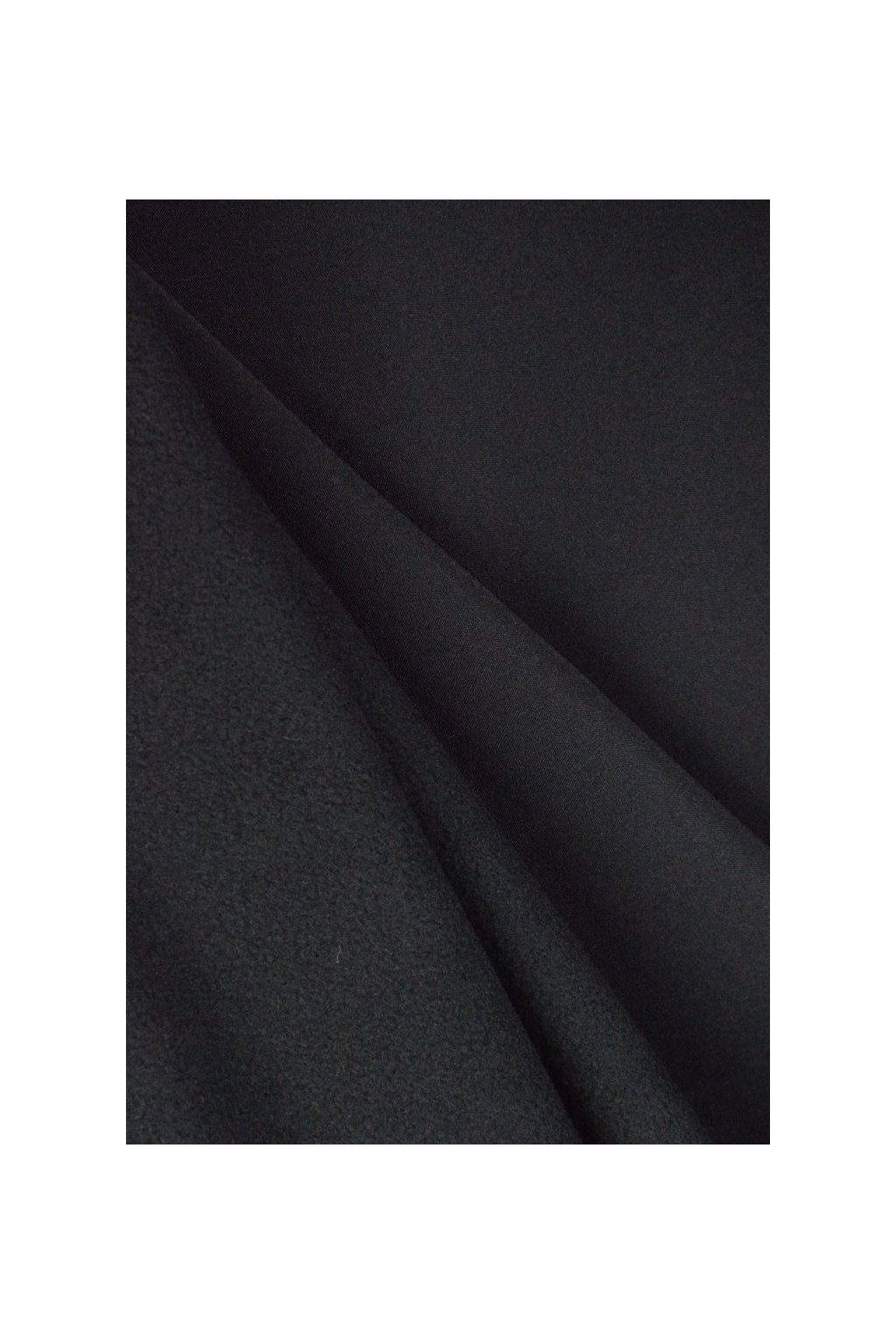 Dvouvrstvý softshell černé barvy. Počesaný vlas na rubové straně.