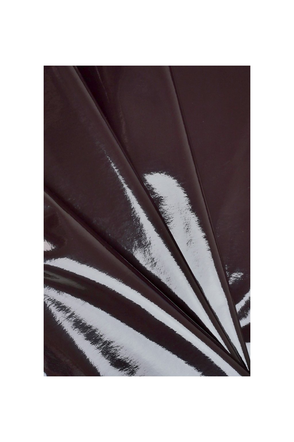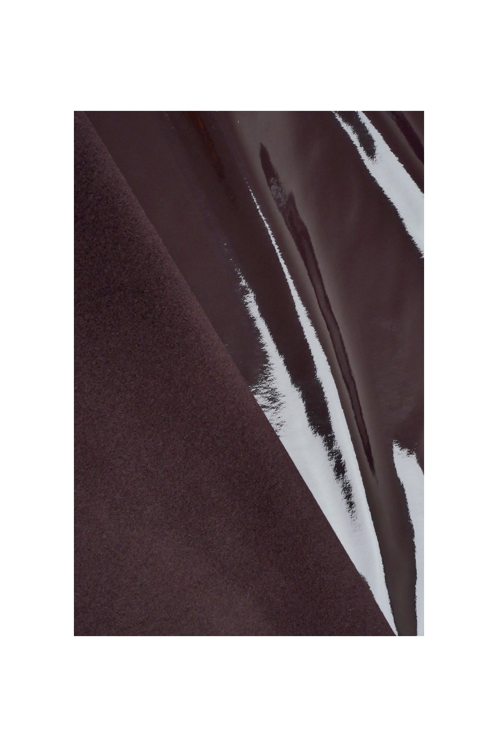 Tento neobyčejný materiál spojuje stylový vzhled s praktickými vlastnostmi. Vrchní vrstva působí jako lesklý latex – hladká, moderní a mírně elastická, ideální pro výrazné modely s fashion nádechem. Z rubové strany tě překvapí měkký počesaný flíz, který dodává látce hřejivost a pohodlí při nošení.