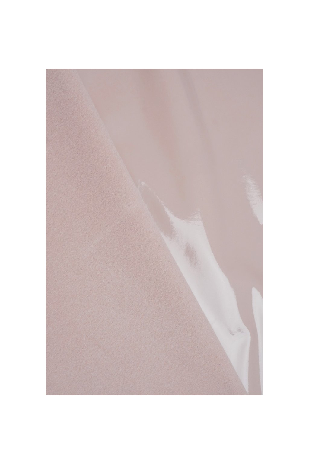 Tento neobyčejný materiál spojuje stylový vzhled s praktickými vlastnostmi. Vrchní vrstva působí jako lesklý latex – hladká, moderní a mírně elastická, ideální pro výrazné modely s fashion nádechem. Z rubové strany tě překvapí měkký počesaný flíz, který dodává látce hřejivost a pohodlí při nošení.