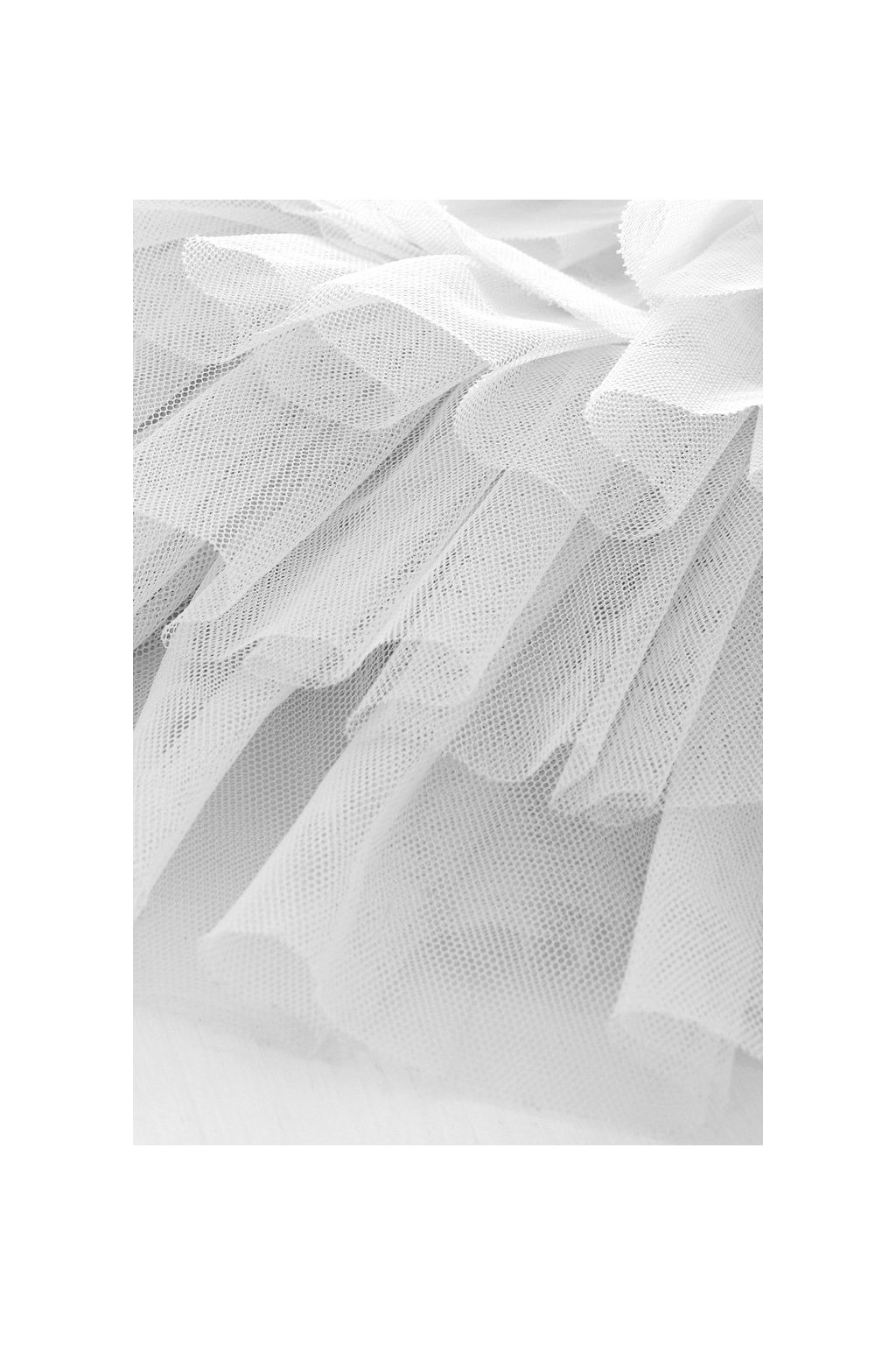 Tyl v bílé barvě, je pevný a drží tvar.Doplňkové parametry