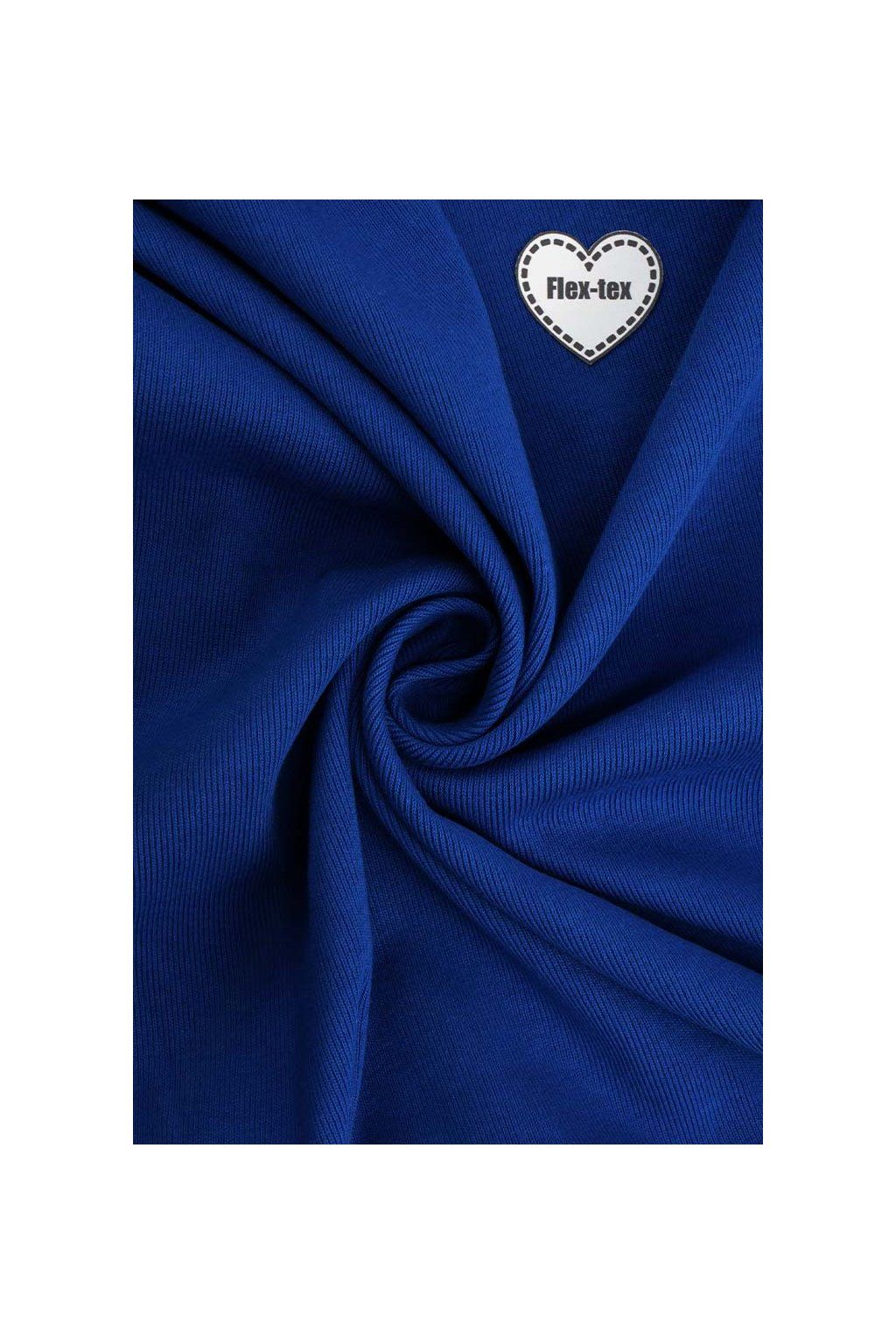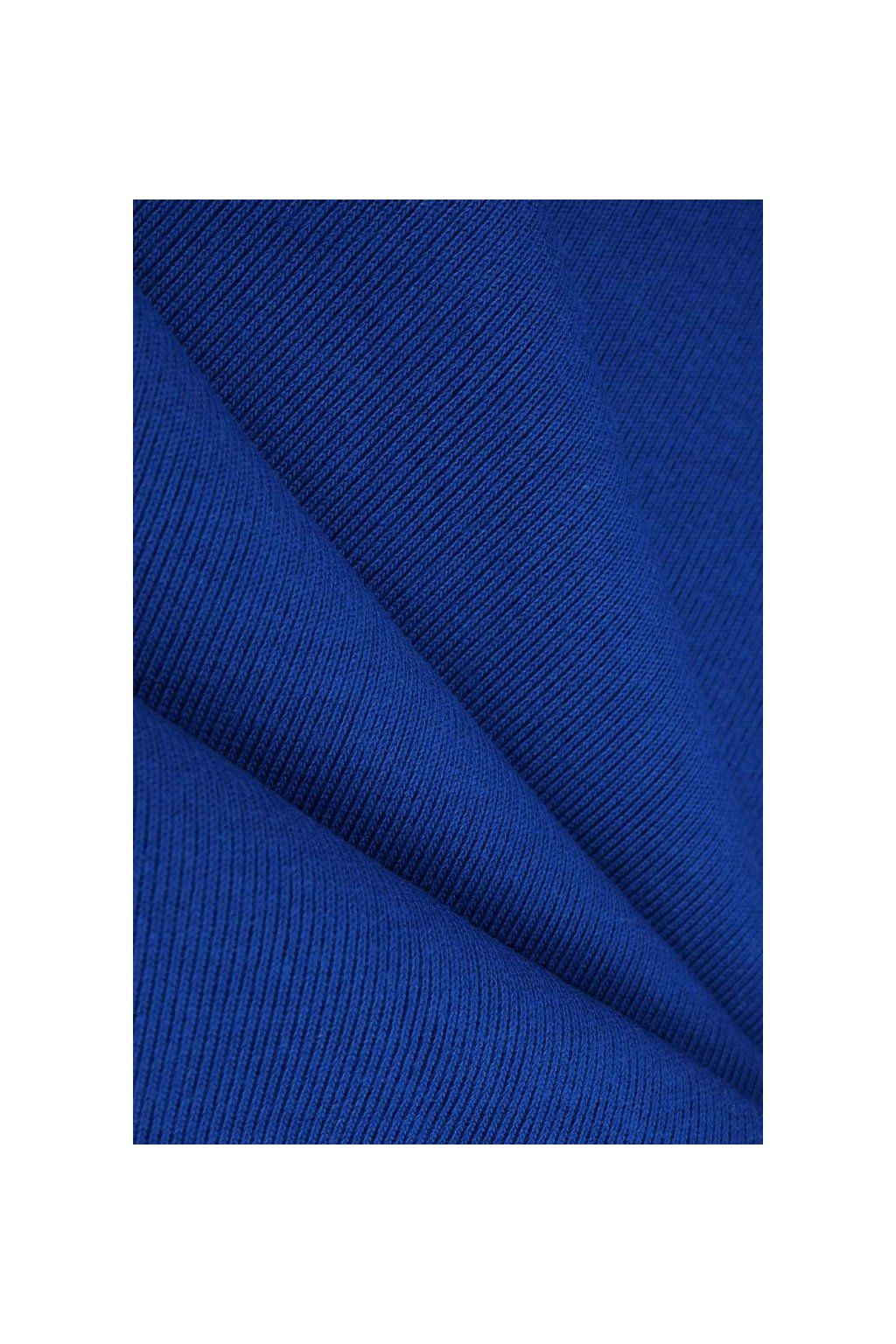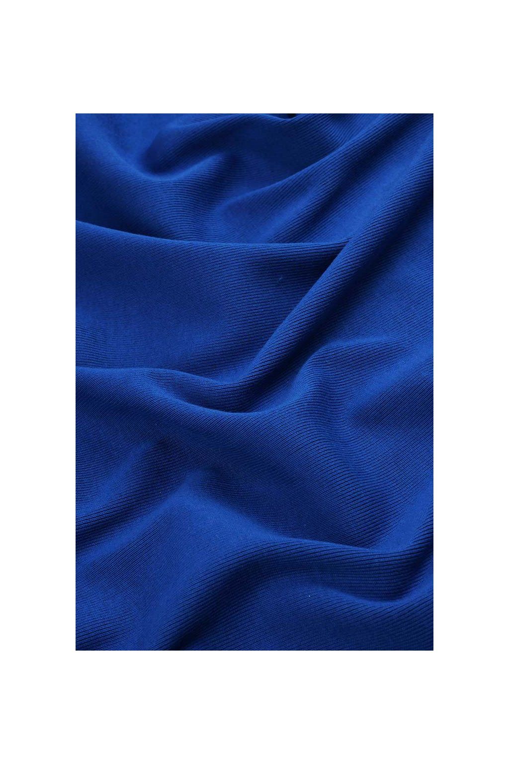 Jednobarevný bavlněný úplet královsky modré barvy s jemným žebrováním je ideální volbou pro stylové a pohodlné oblečení.
