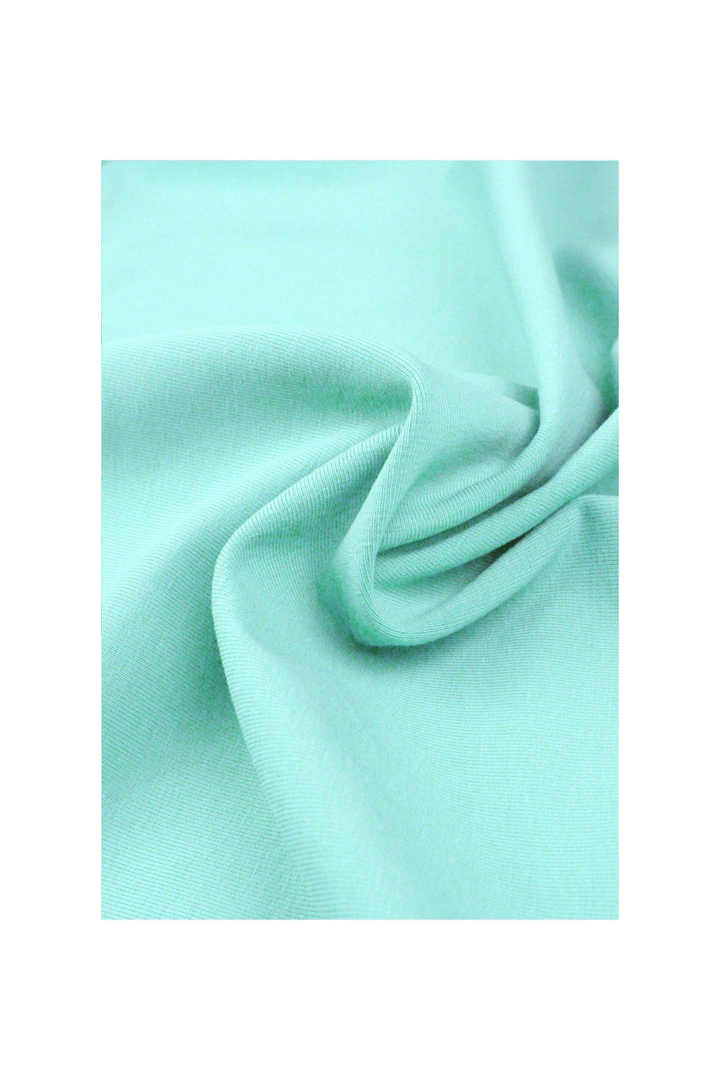 Jednobarevný bavlněný úplet světle mátové barvy.