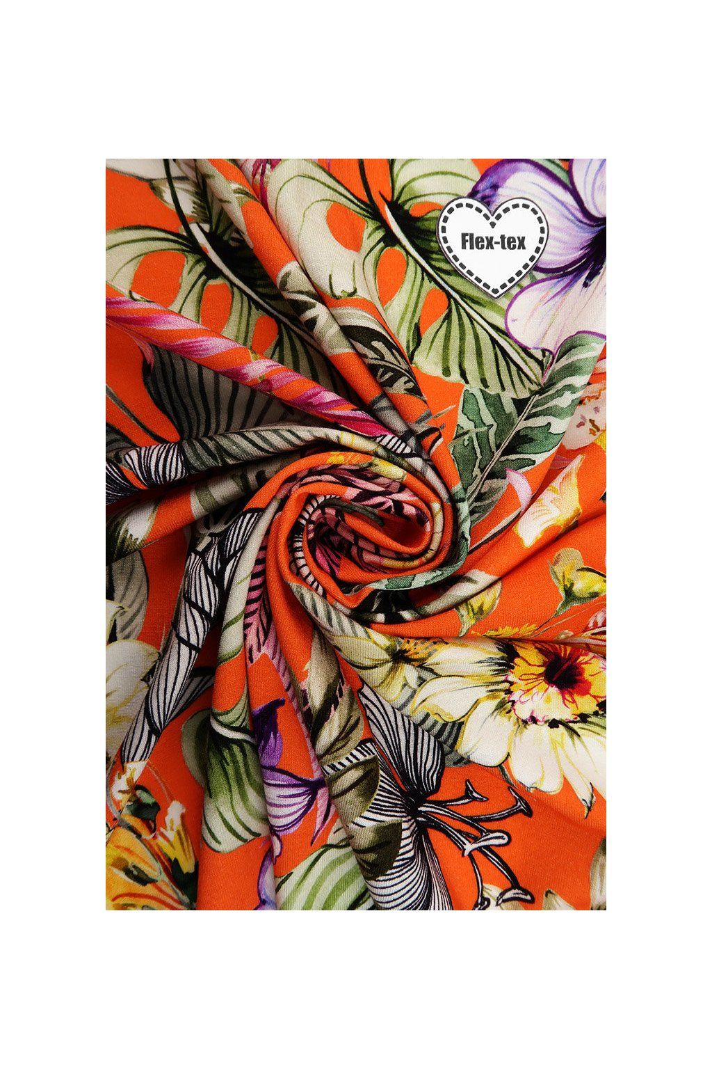 Úplet sytě oranžové barvy s rostlinným motivem.