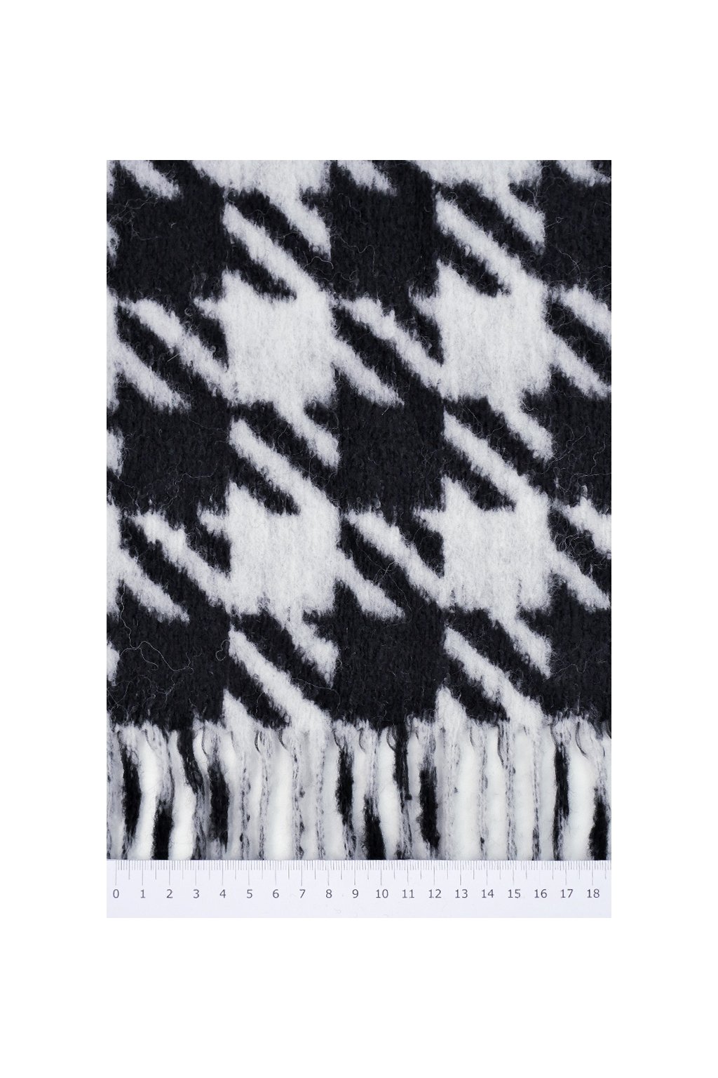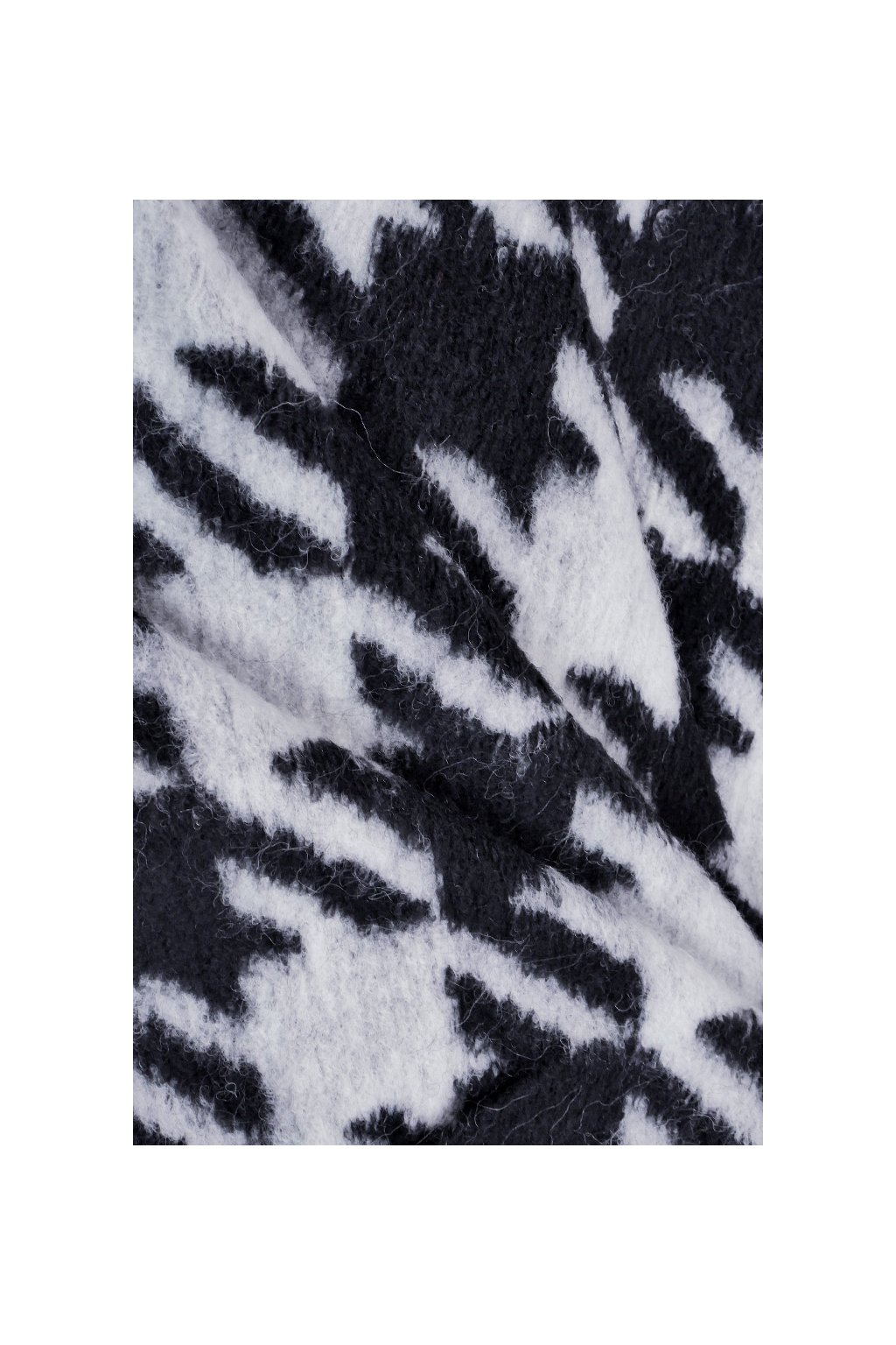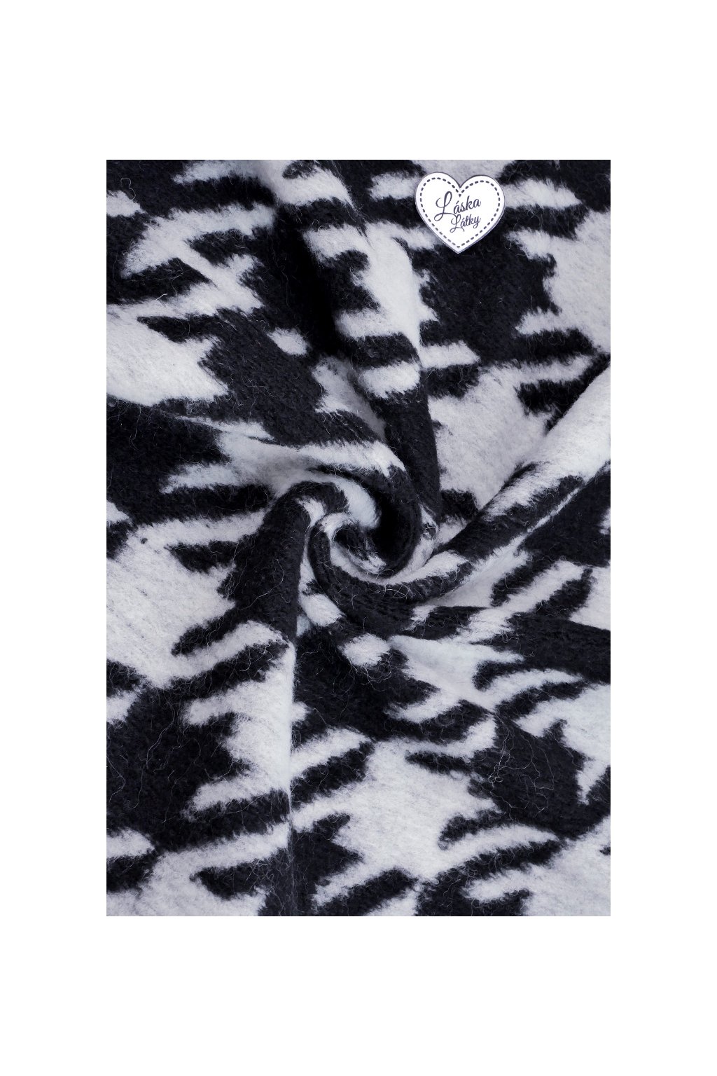 VLNĚNÁ KABÁTOVINA - ČERNOBÍLÁ KOHOUTÍ STOPA ZAKONČENA TŘÁSNĚMI