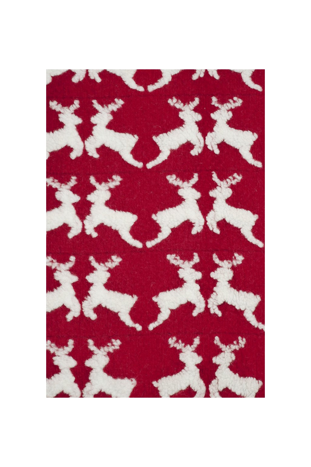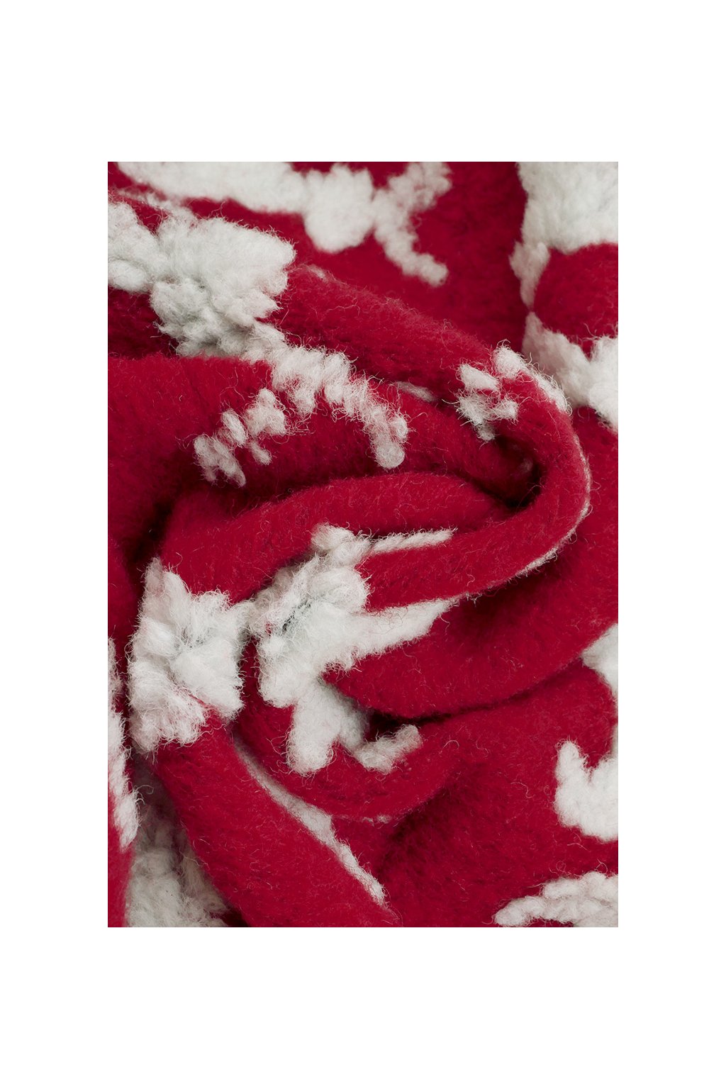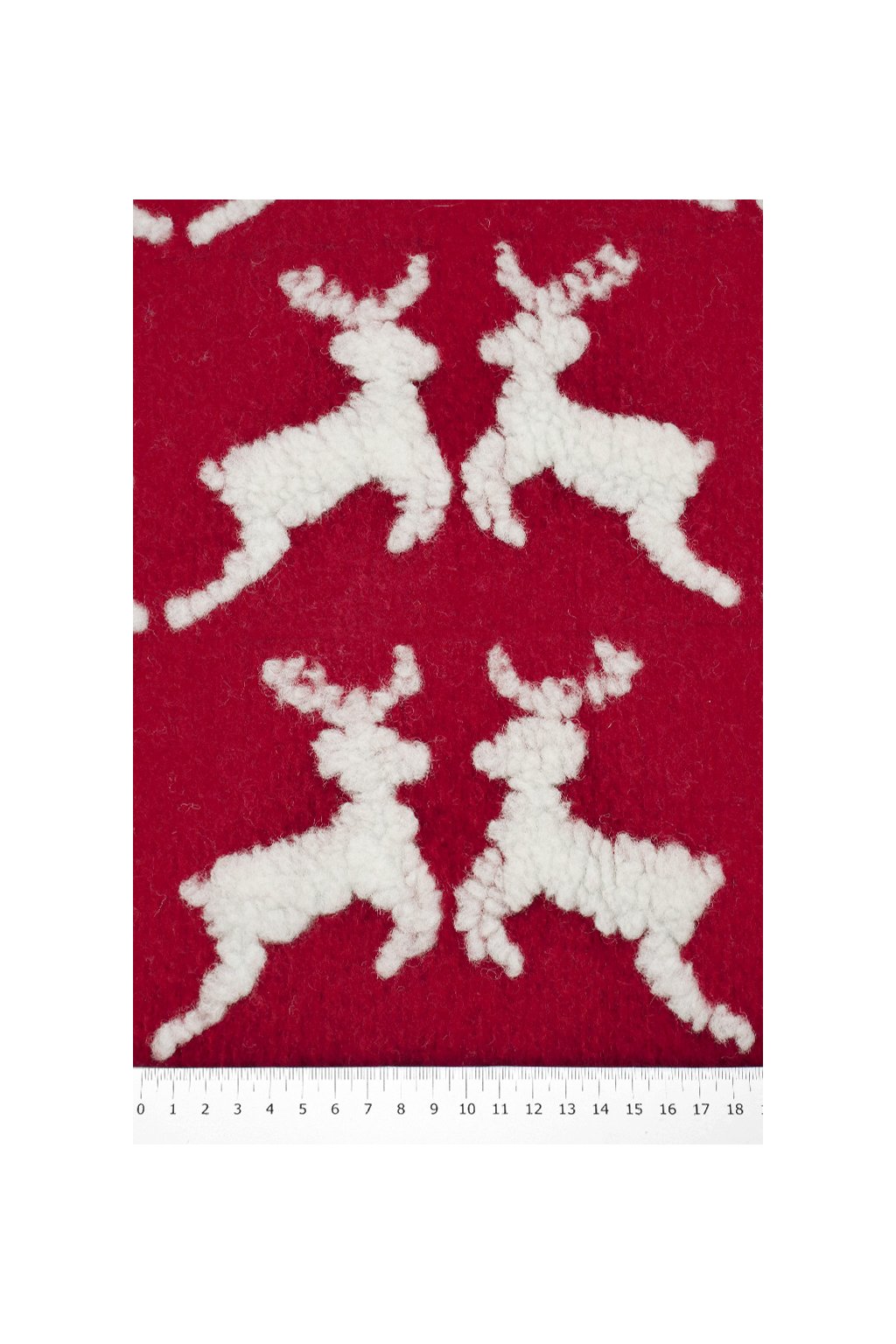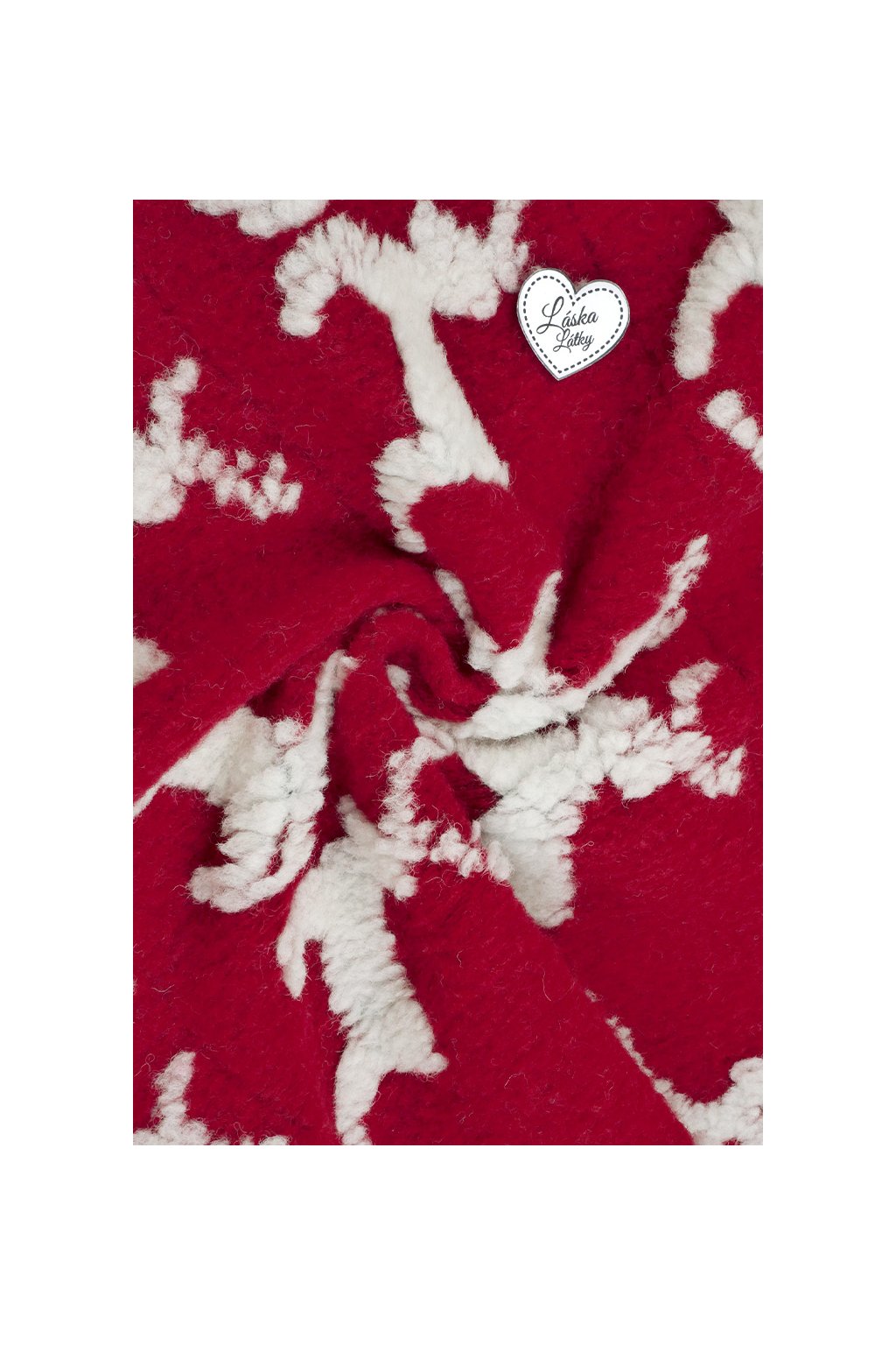 VLNĚNÁ KABÁTOVINA - ČERVENÁ S MOTIVEM SOBŮ BÍLÉ BARVY