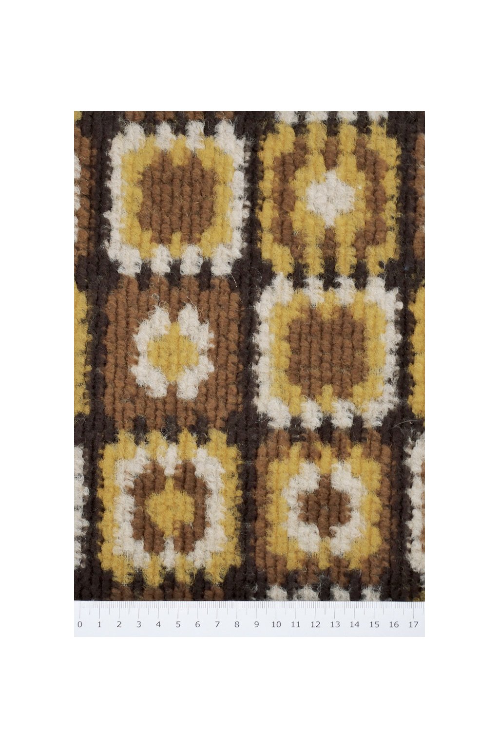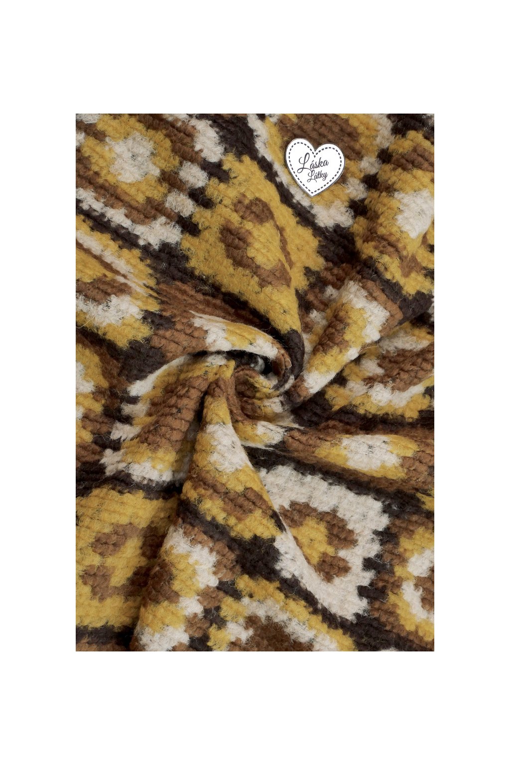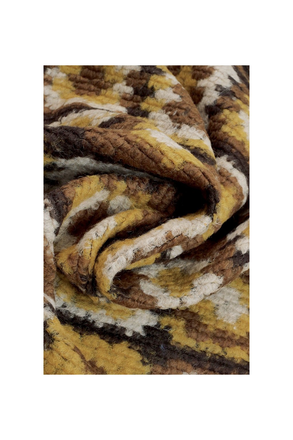 VLNĚNÁ KABÁTOVINA - HNĚDÝ A ŽLUTÝ MOZAIKOVÝ VZOR