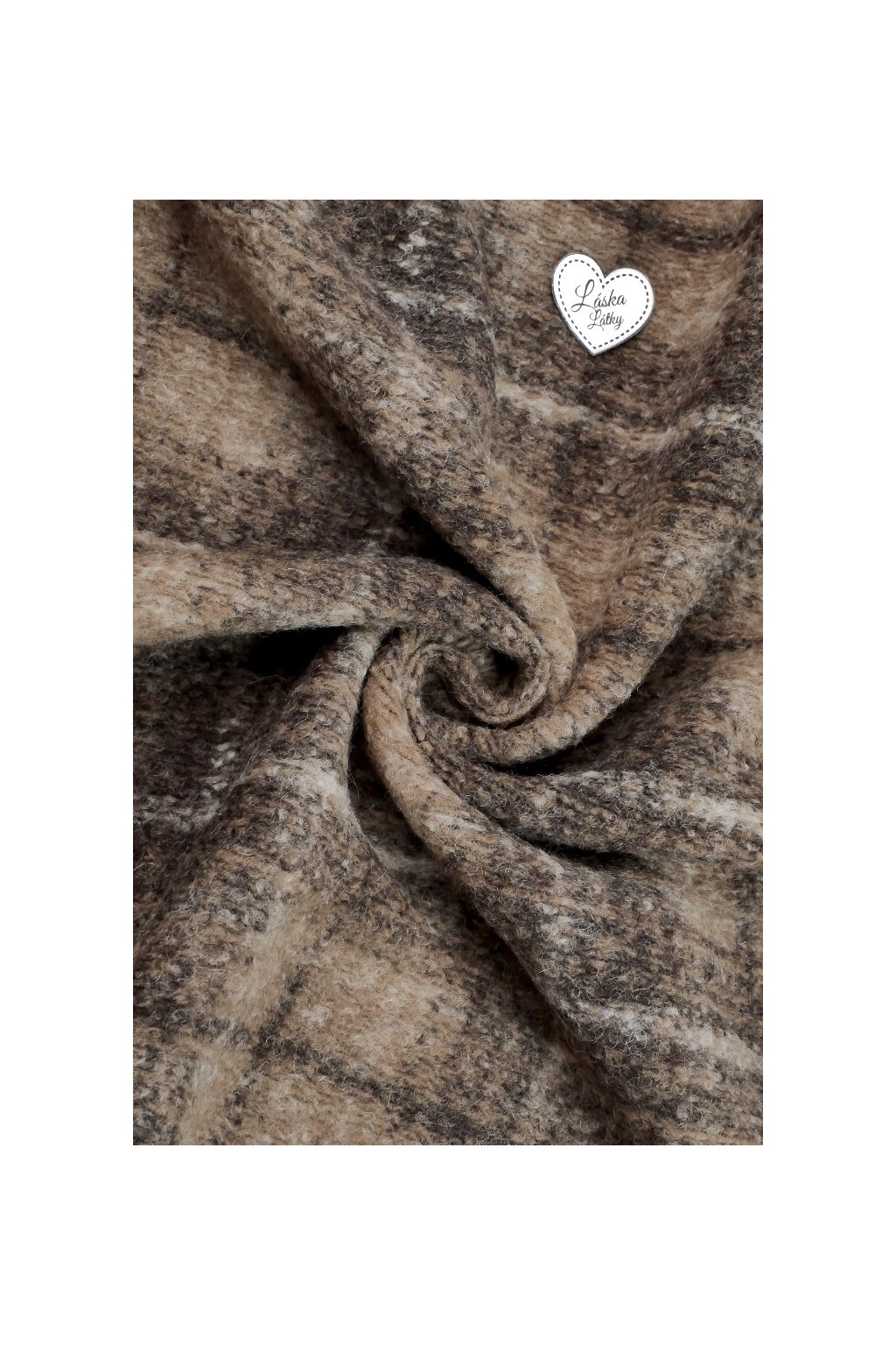 VLNĚNÁ KABÁTOVINA - KÁRO V HNĚDÝCH ODSTÍNECH