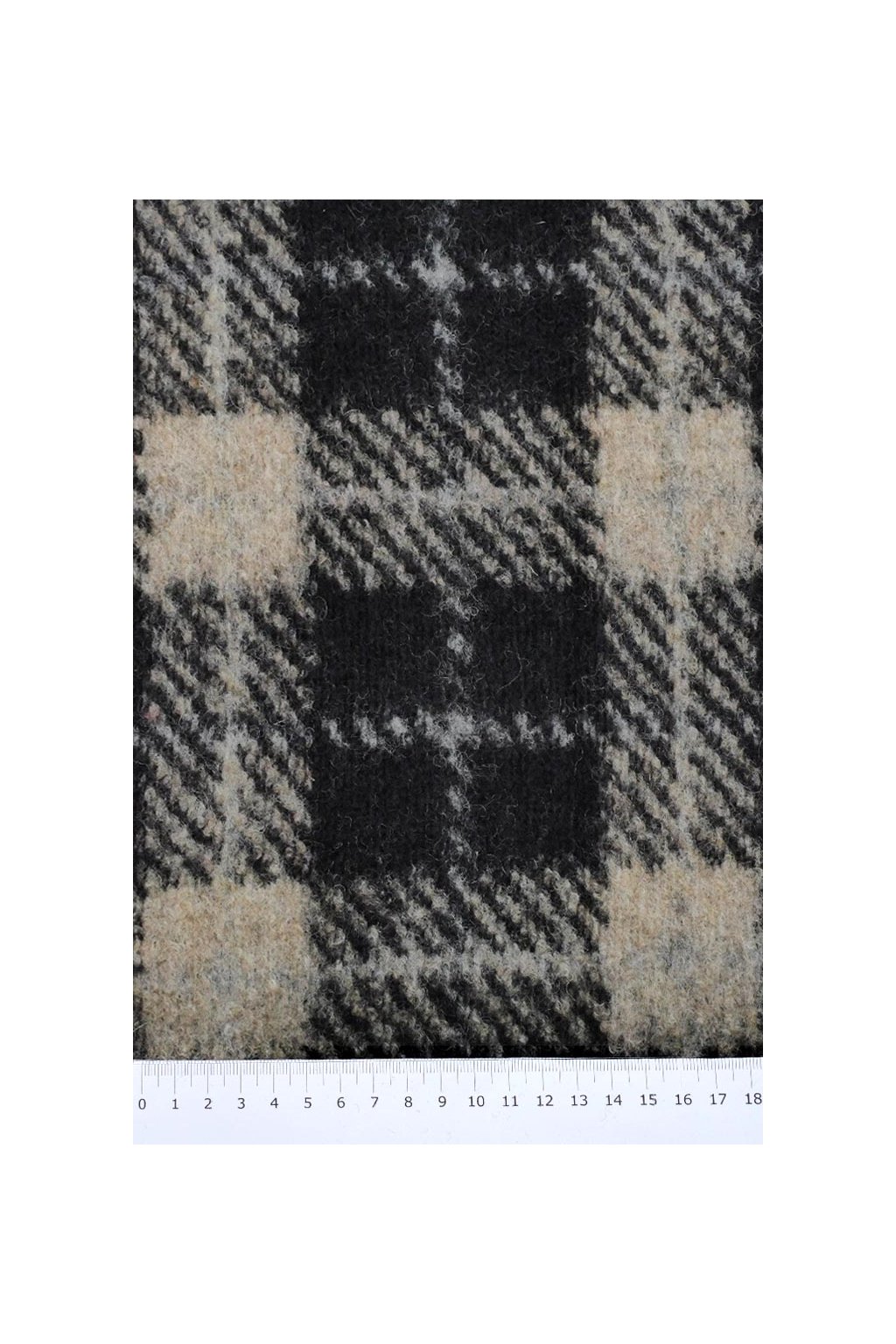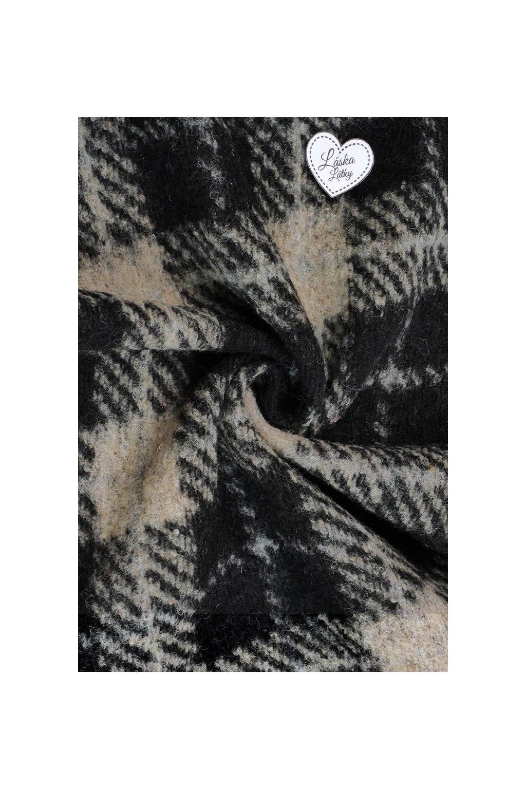 VLNĚNÁ KABÁTOVINA - ŠEDOČERNÁ, BÉŽOVÁ SKOTSKÁ KOSTKA