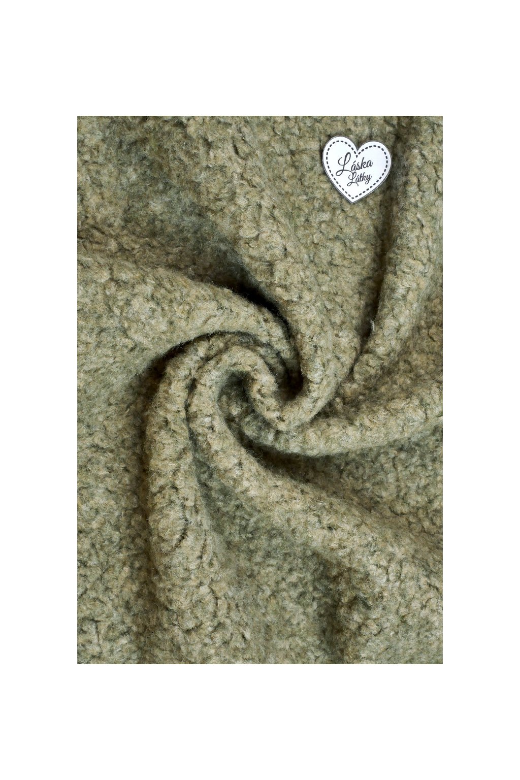 VLNĚNÁ KABÁTOVINA - SVĚTLÁ KHAKI ZELENÁ SE STRUKTUROVANÝM POVRCHEM