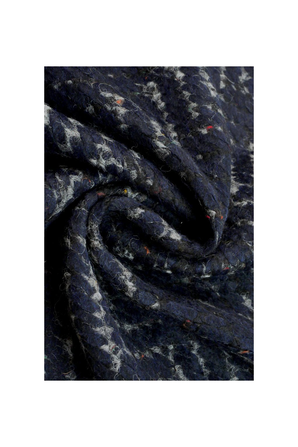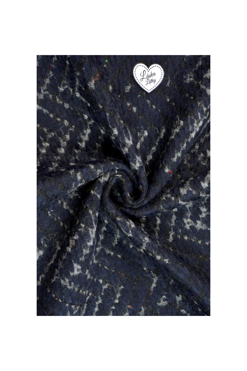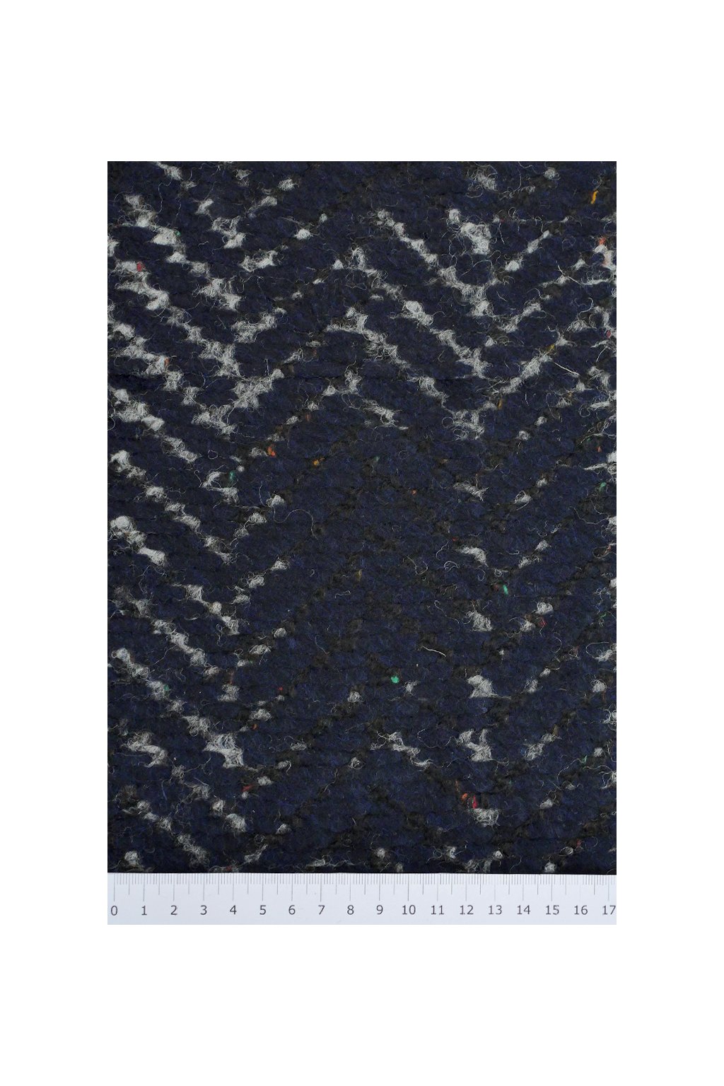VLNĚNÁ KABÁTOVINA - TMAVĚ MODRÝ PLASTICKÝ CHEVRON VZOR