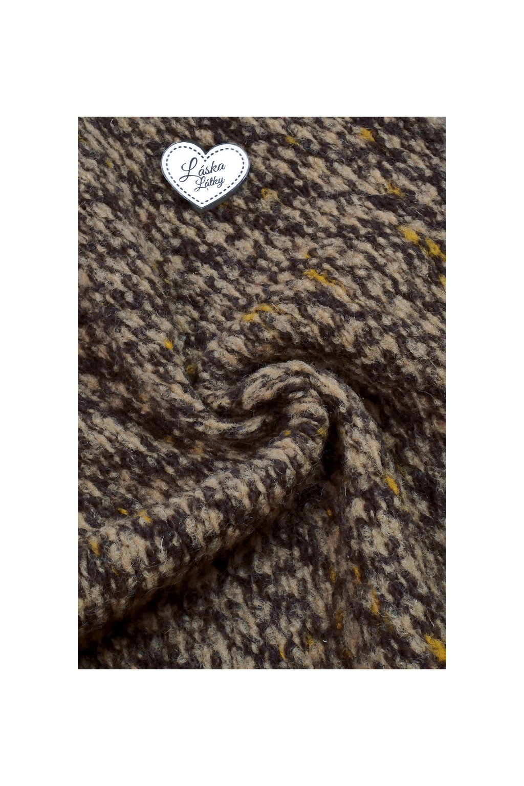 VLNĚNÁ KABÁTOVINA - VELBLOUDÍ, HNĚDÝ, ŽLUTÝ VETKANÝ VZOR (VAŘENÁ VLNA)