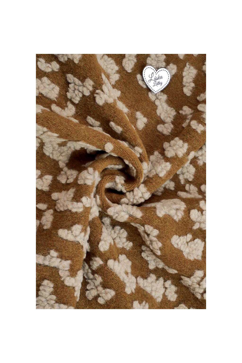 VLNĚNÁ KABÁTOVINA - VELBLOUDÍ S BÉŽOVÝM VYSTOUPLÝM VZOREM