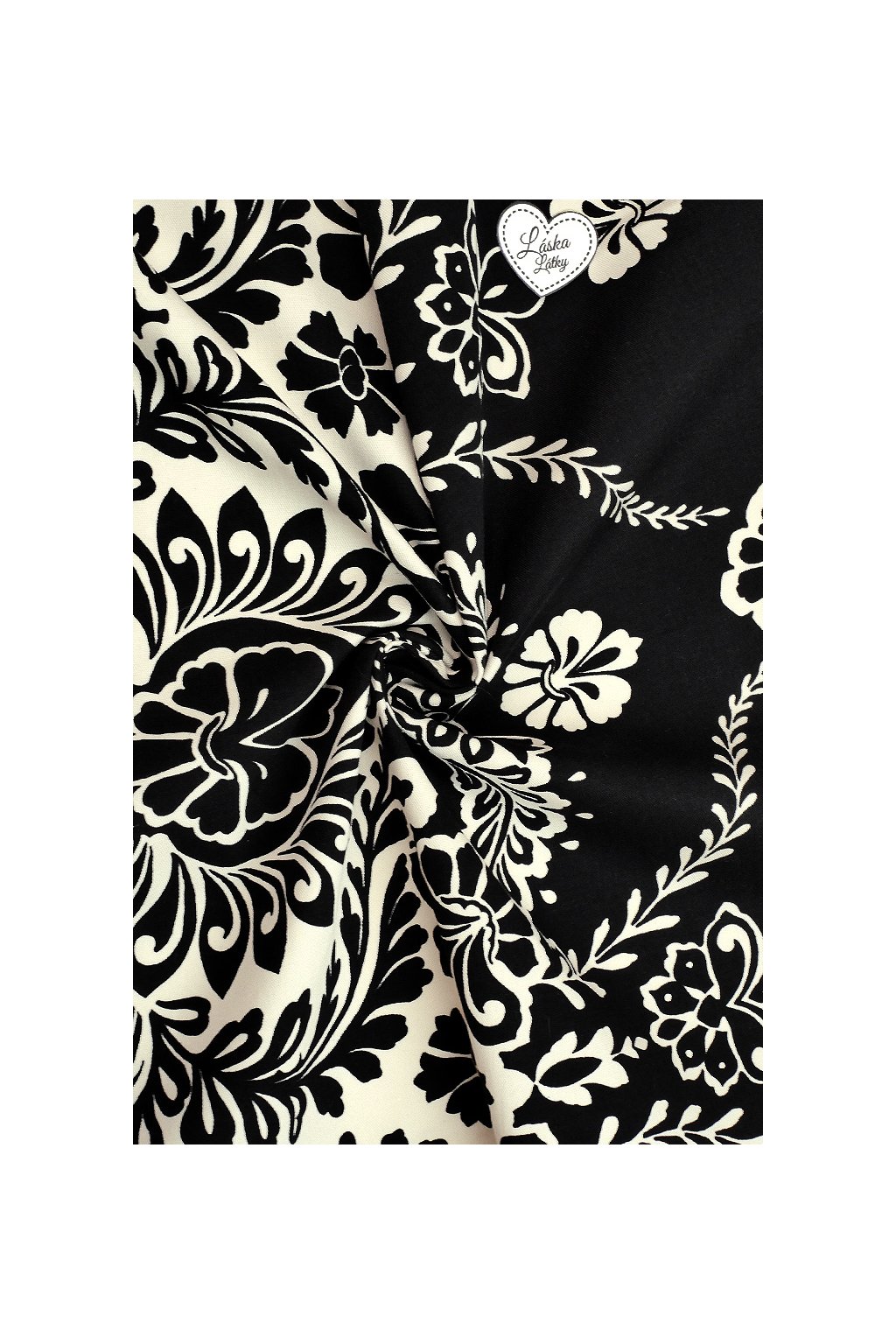 BAVLNĚNÉ PLÁTNO, ČERNÉ S KRÉMOVÝM ORNAMENTÁLNÍM VZOREM