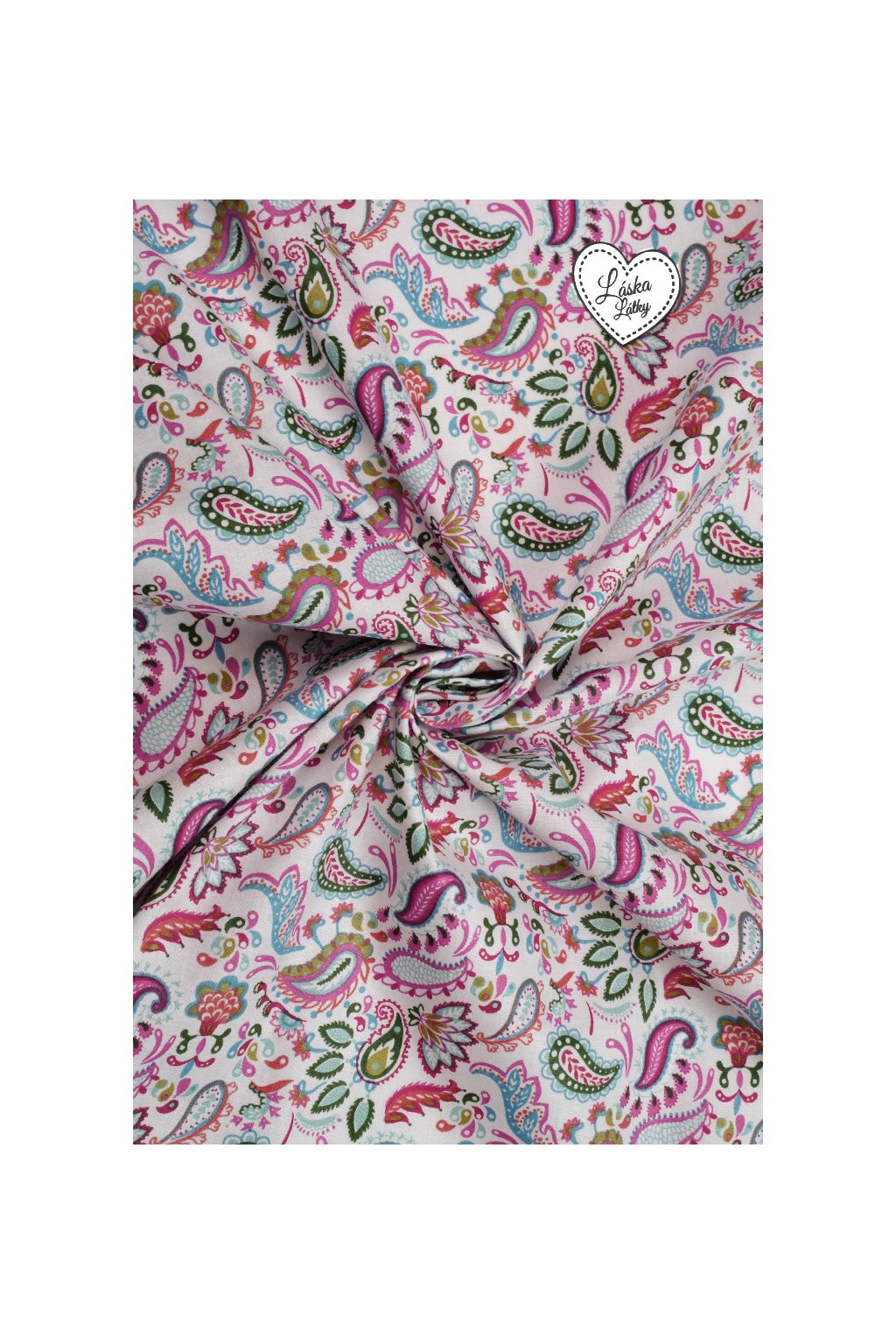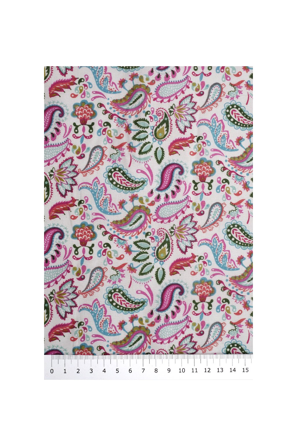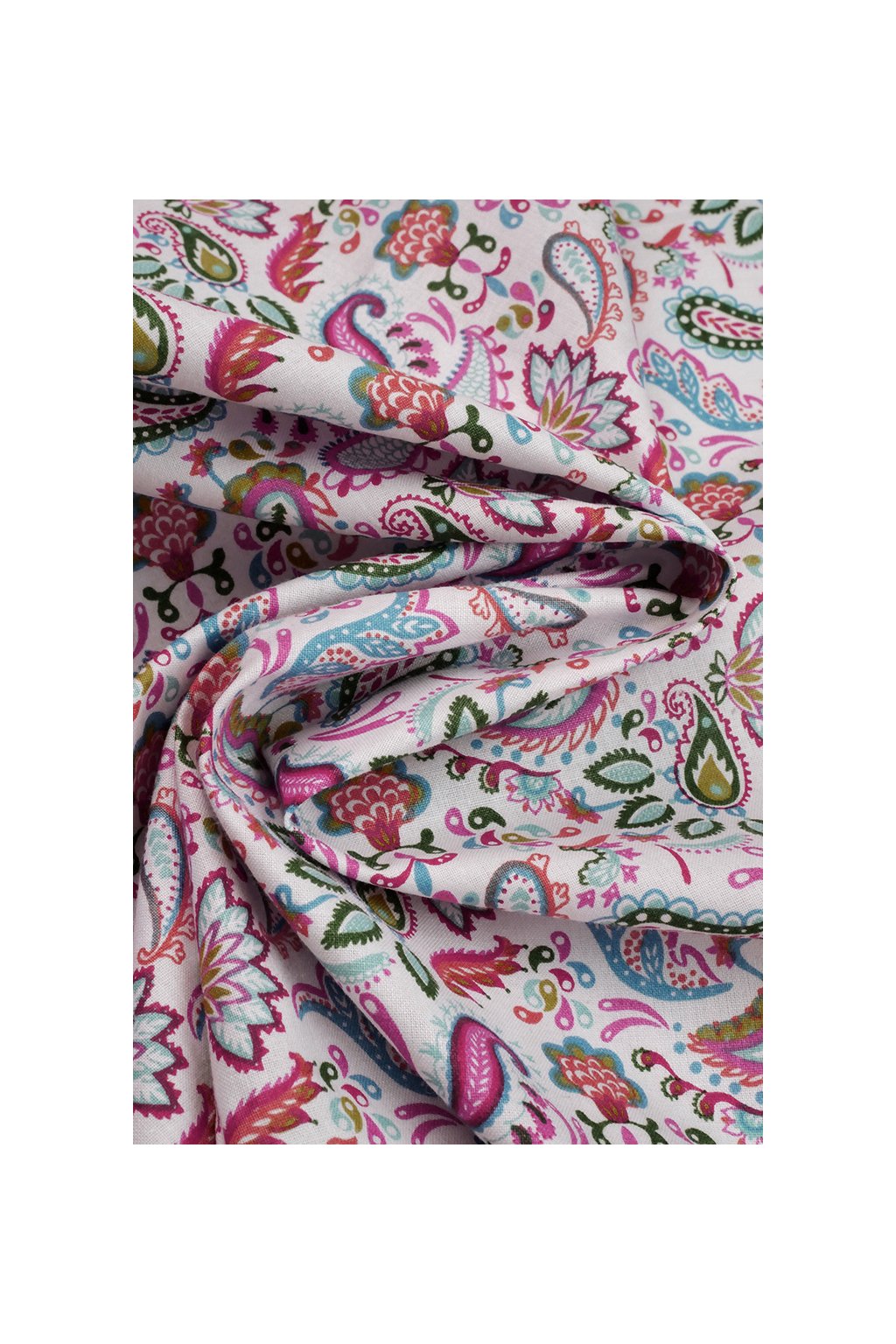 BAVLNĚNÝ POPELÍN, BÍLÝ S BAREVNÝMI ORNAMENTY