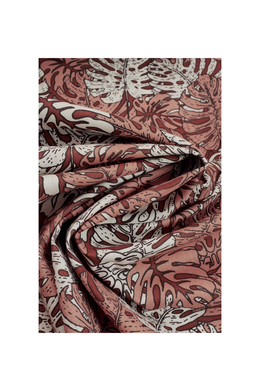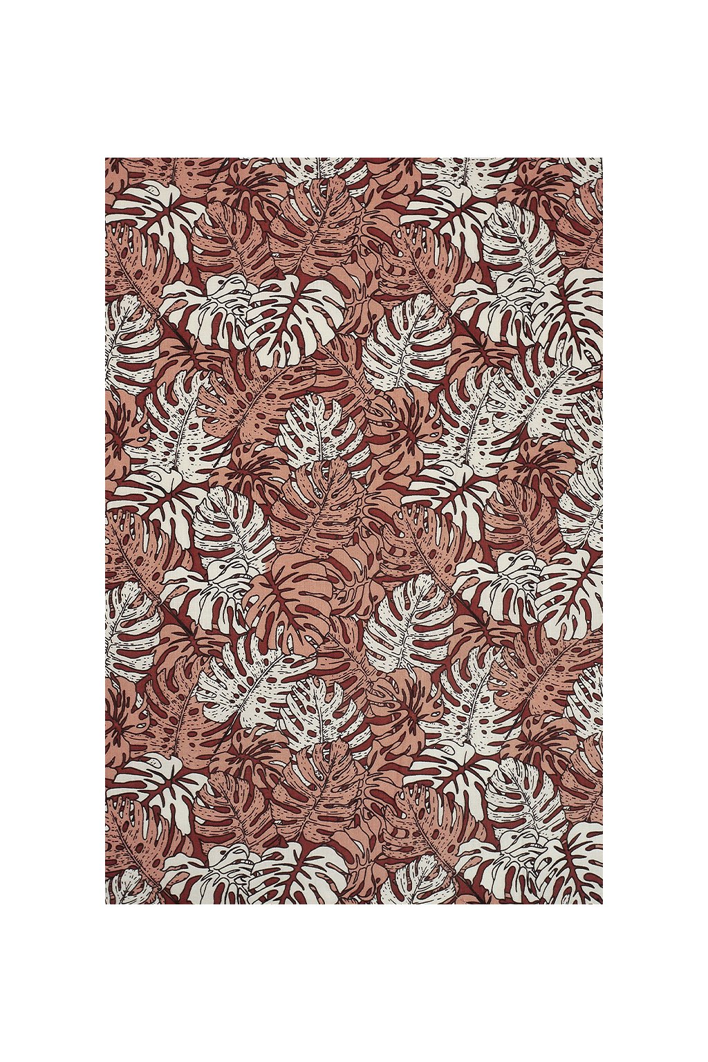 BAVLNĚNÝ POPELÍN, CIHLOVÝ S LISTY MONSTERY