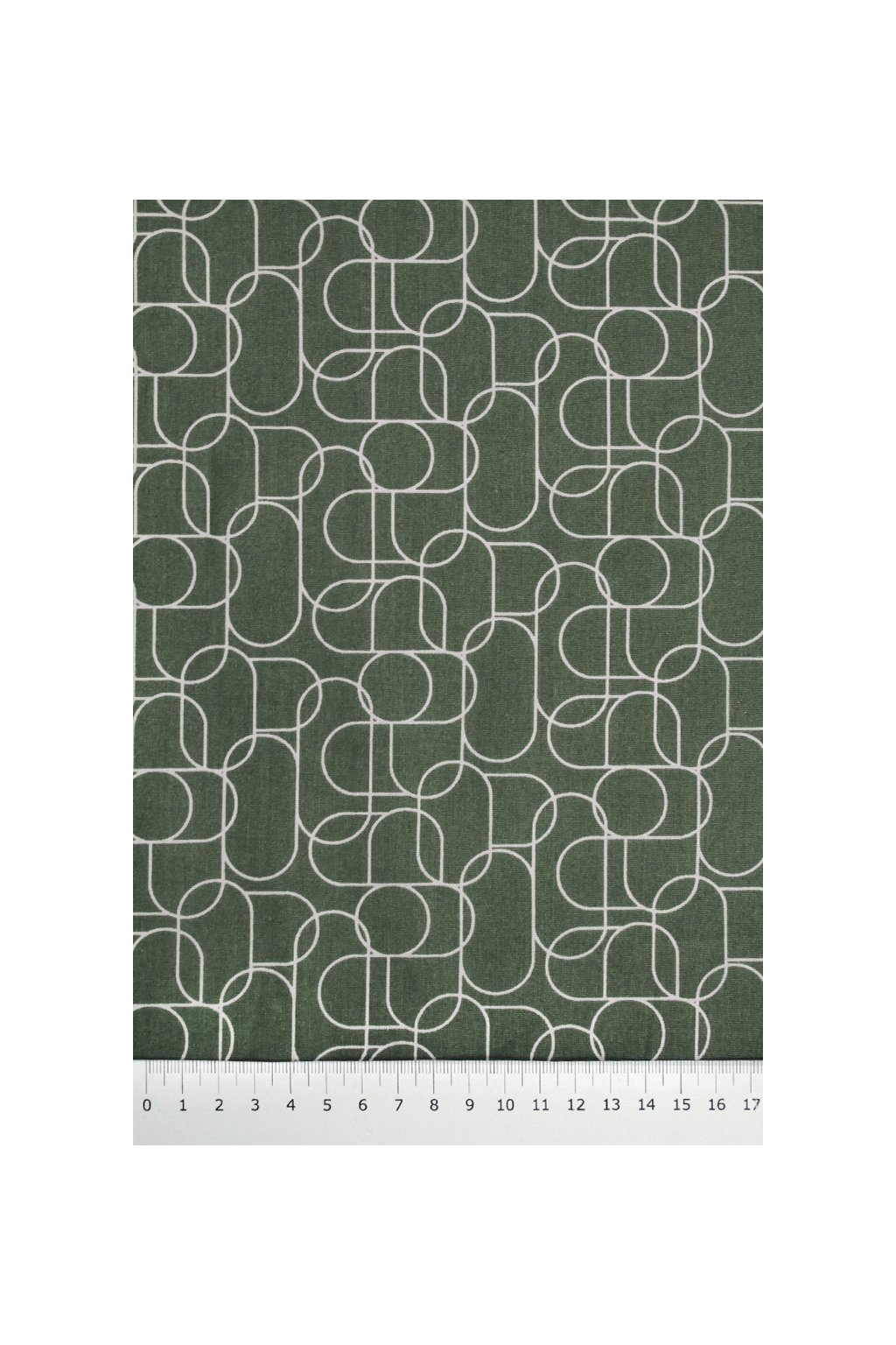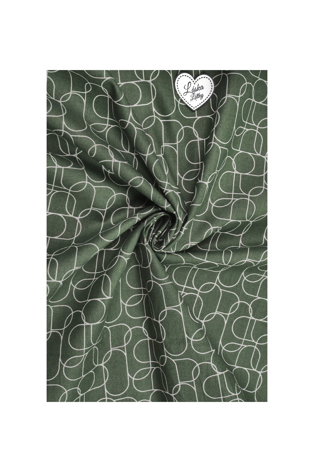 BAVLNĚNÝ POPELÍN, KHAKI S GEOMETRICKÝM VZOREM