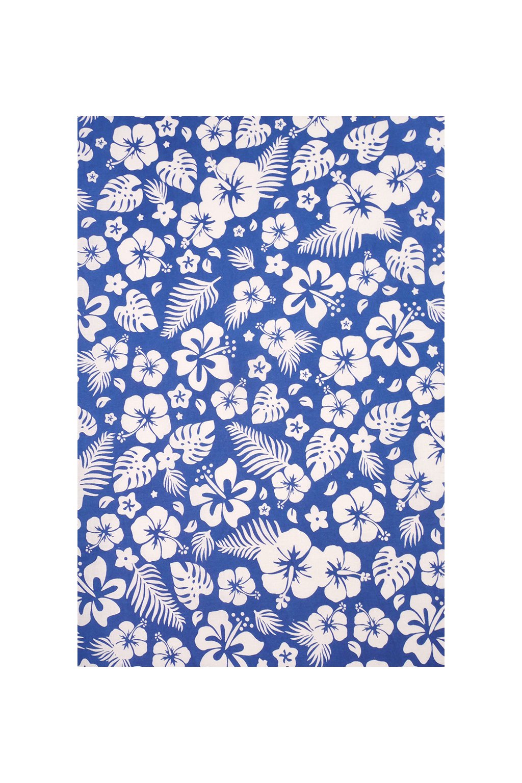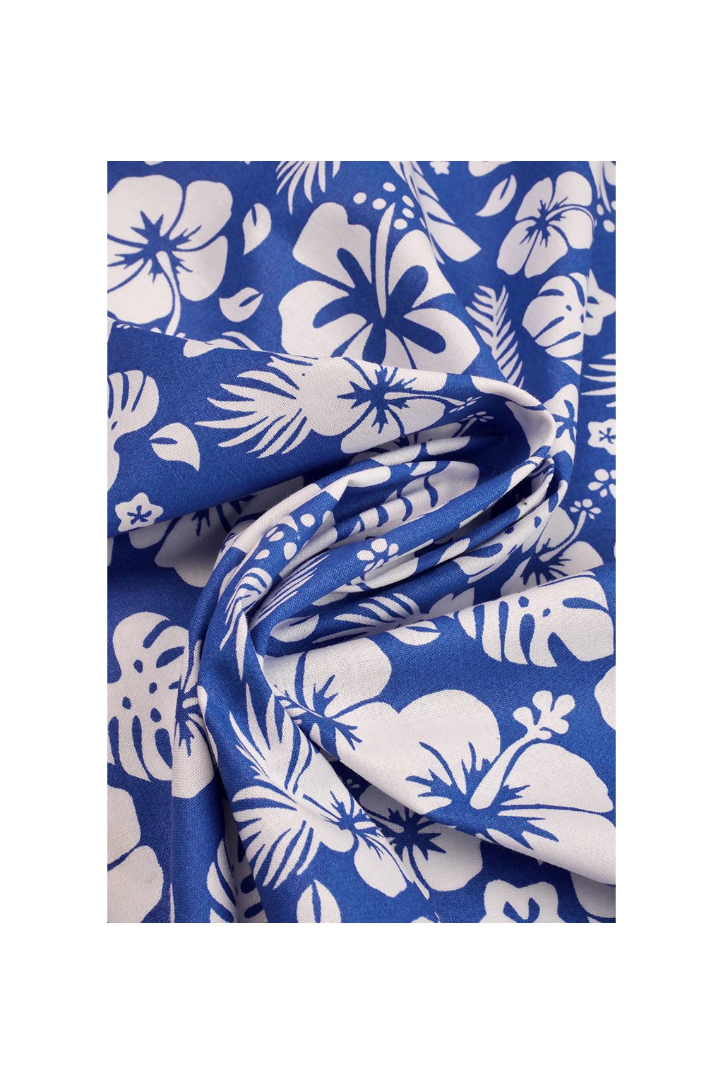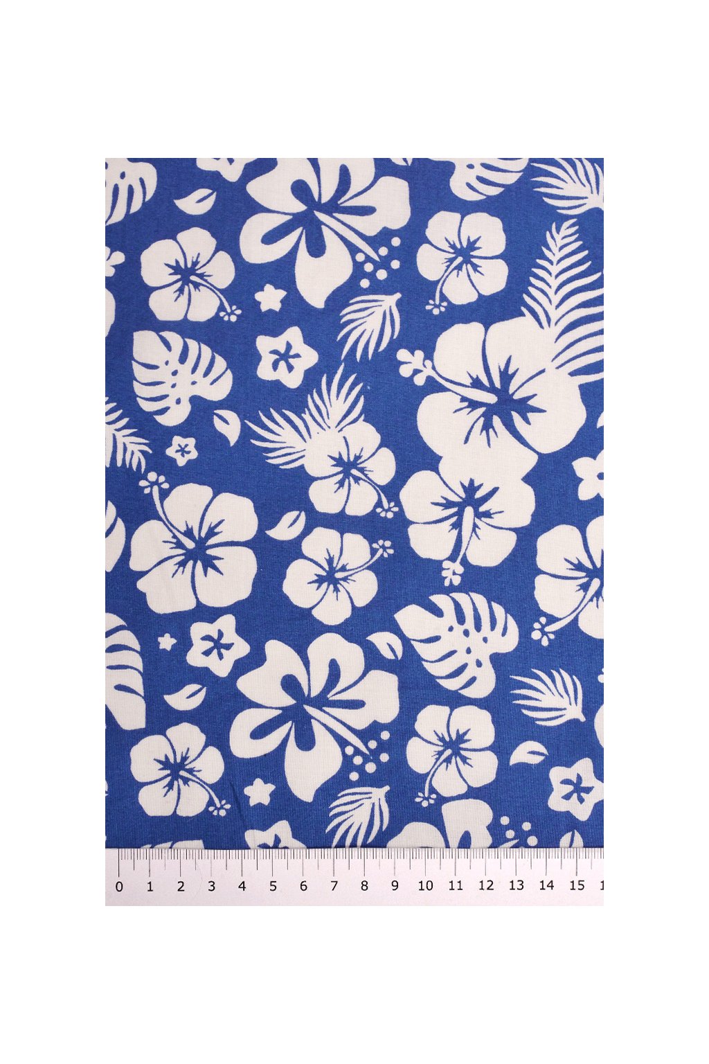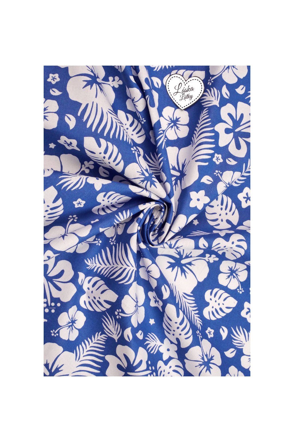 BAVLNĚNÝ POPELÍN, KOBALTOVÝ S KVĚTY IBIŠKU