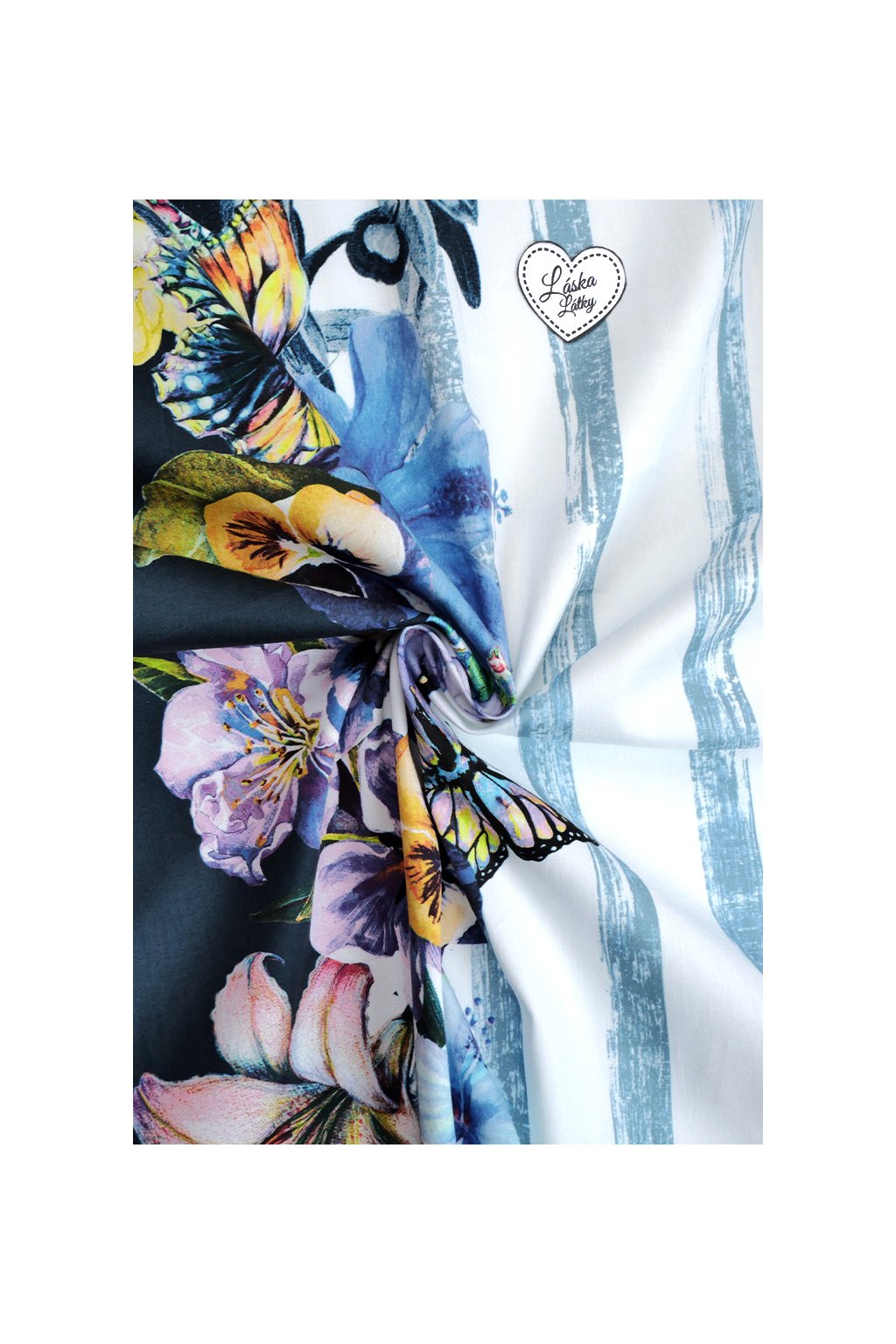 ELASTICKÁ BAVLNĚNÁ ŠATOVKA, PRUHOVANÁ SE VZOREM KVĚTIN