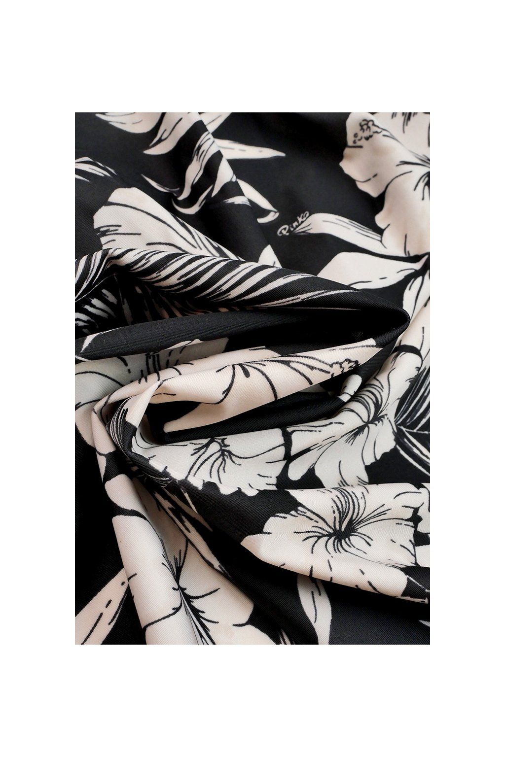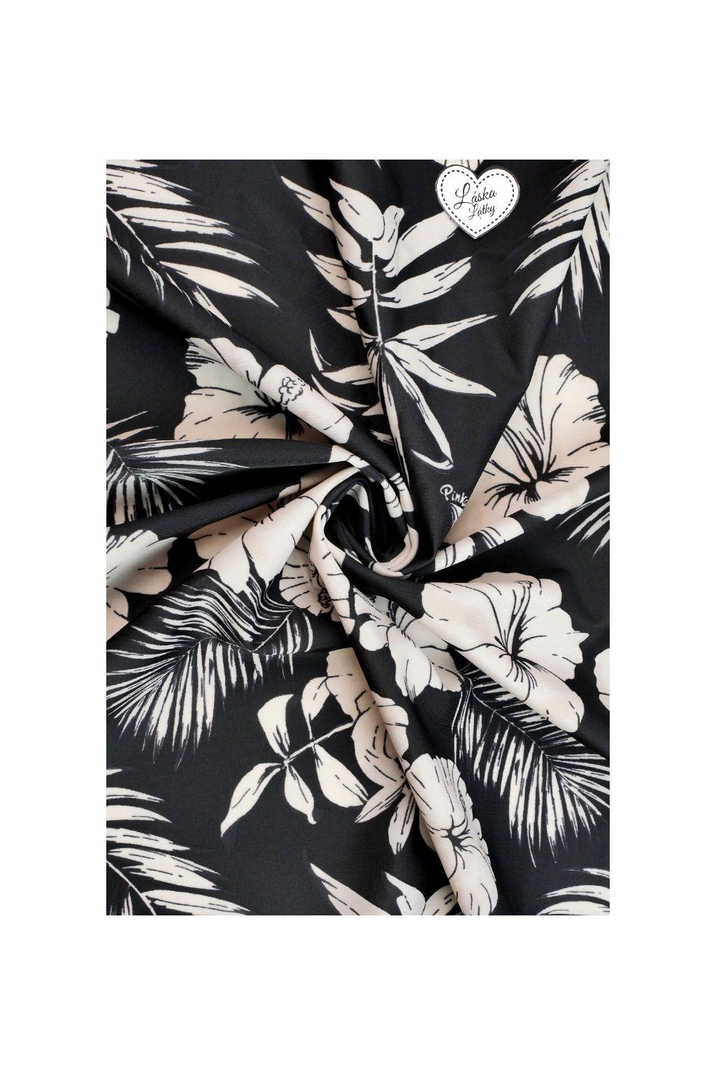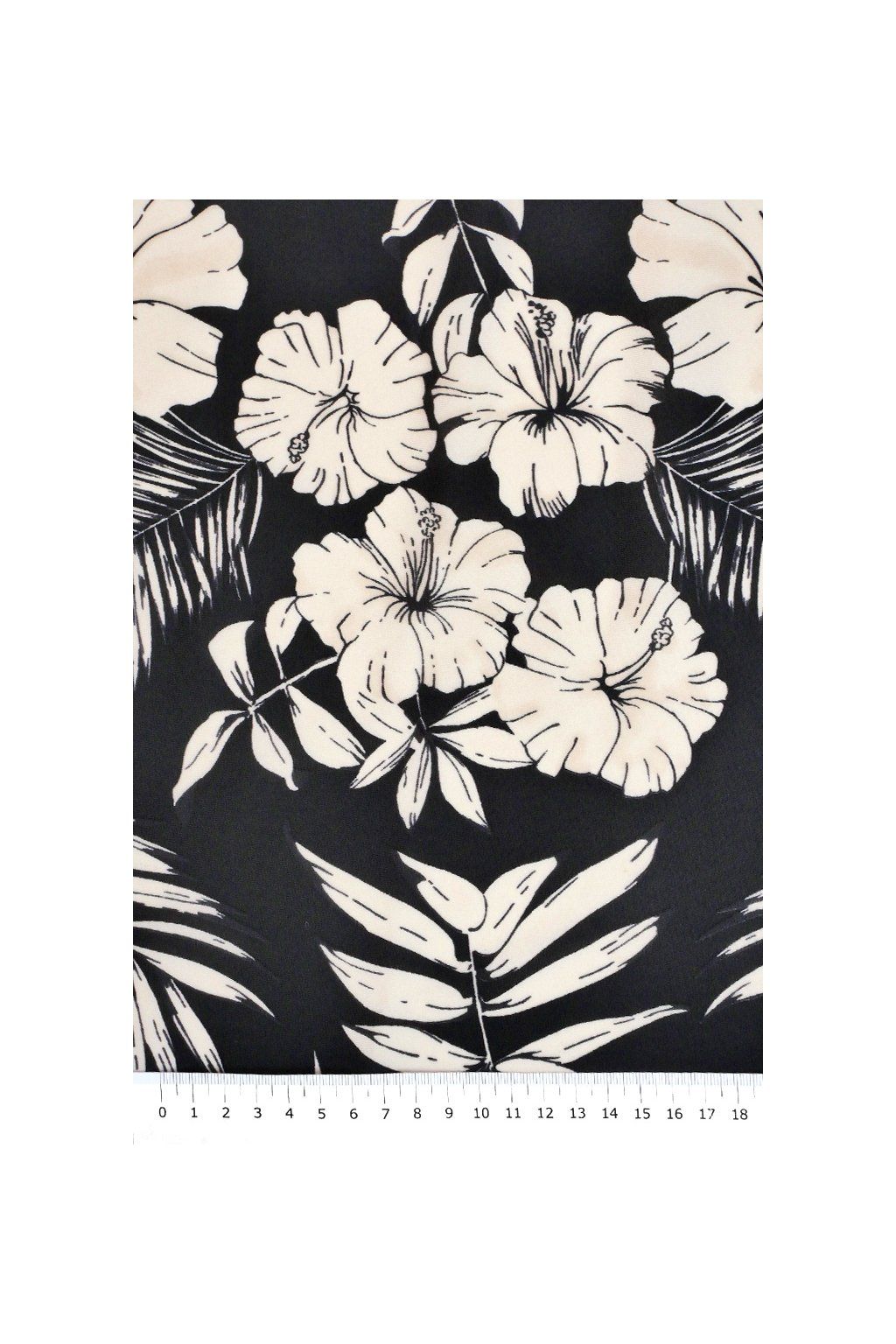 ELASTICKÝ ÚPLET, ČERNÝ S BÉŽOVÝMI KVĚTINAMI