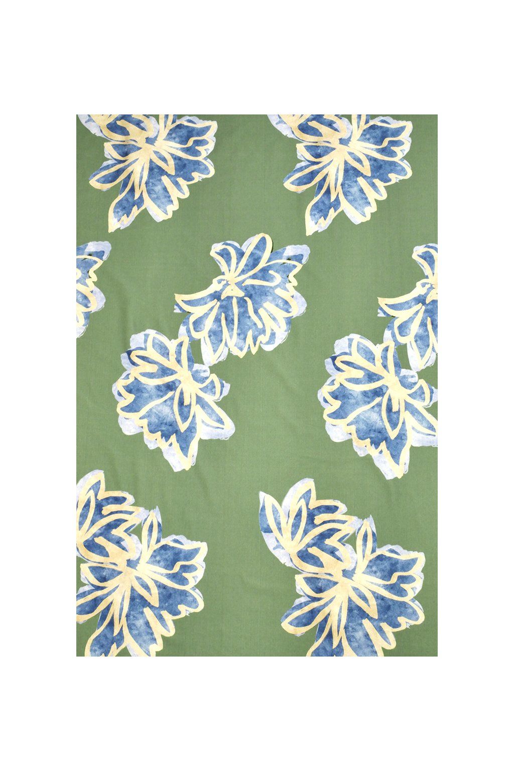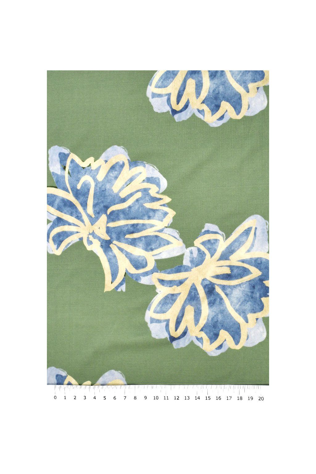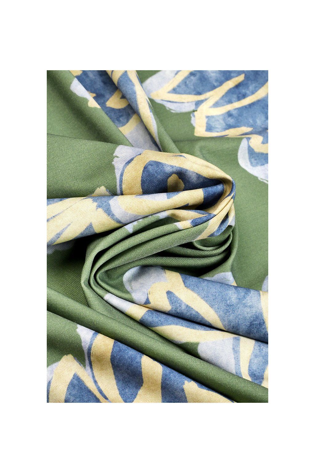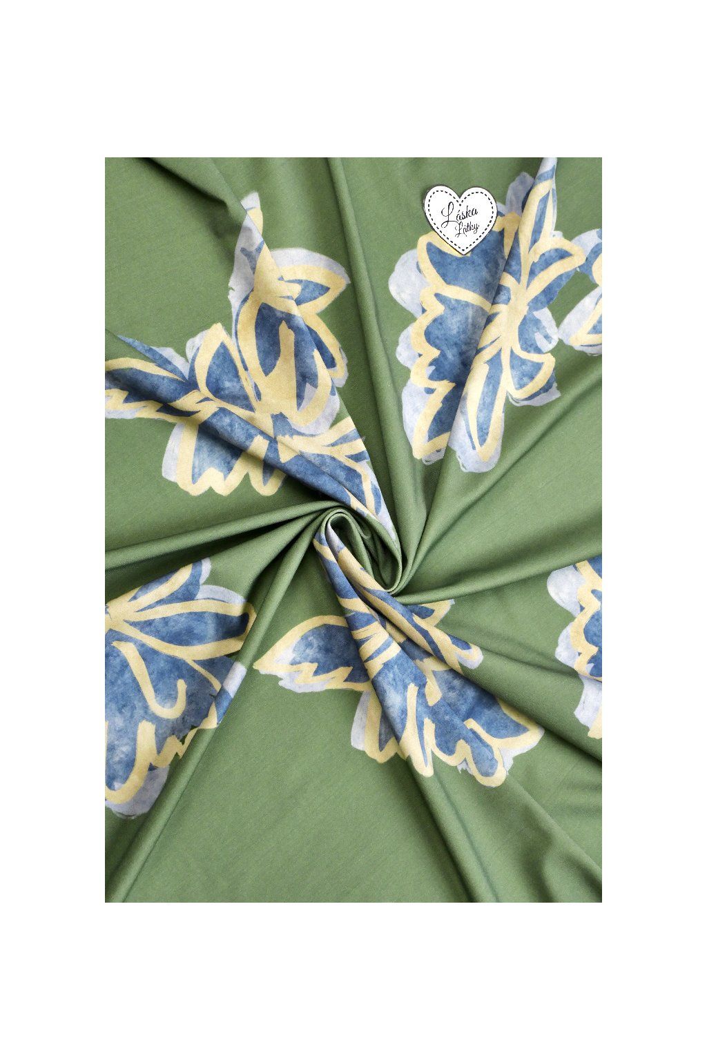 LEHKÝ ELASTICKÝ ÚPLET, ZELENÝ S MOTIVEM MODRÝCH KVĚTIN