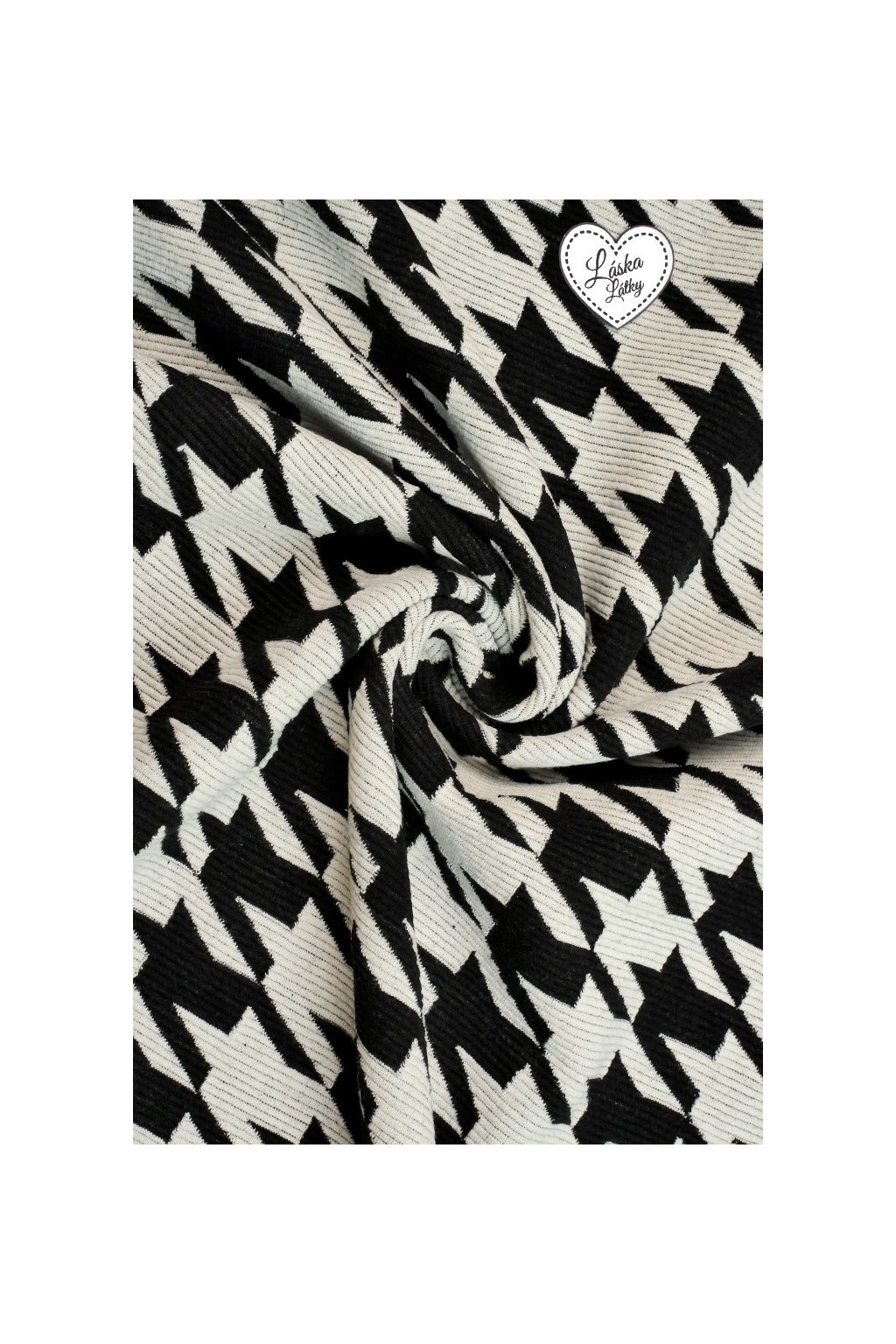 ÚPLETOVÁ KABÁTOVINA S ŽEBROVÁNÍM, ČERNOBÍLÁ S VELKÝM PEPITO VZOREM